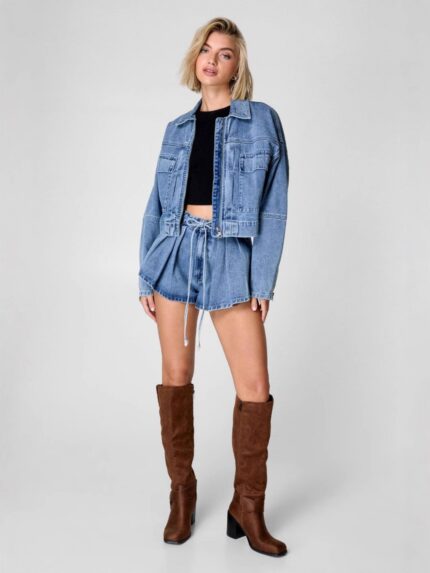 Yilu_A high-quality casual and free-spirited denim jacket, along with a women’s high-waisted loose-fitting and form-fitting short skirt set.