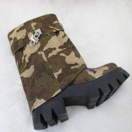 Yilu_High-quality rhinestone-studded round-top waterproof platform thick-soled side-zip casual and niche design style pant leg boots women’s shoes