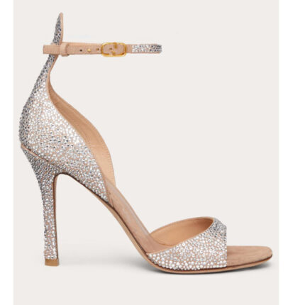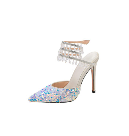 Yilu_High-quality pointed-toe low-heeled high-heeled shoes with snake-shaped lace-up straps, rhinestone sequins, hollow design, large size, summer sandals