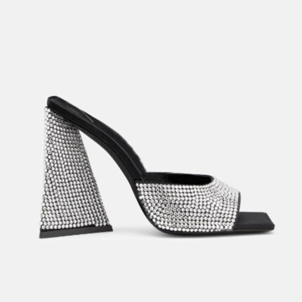 Yilu_High-quality square-toe one-piece thick-soled flip-flops for big size, rhinestone stiletto heels, women’s shoes