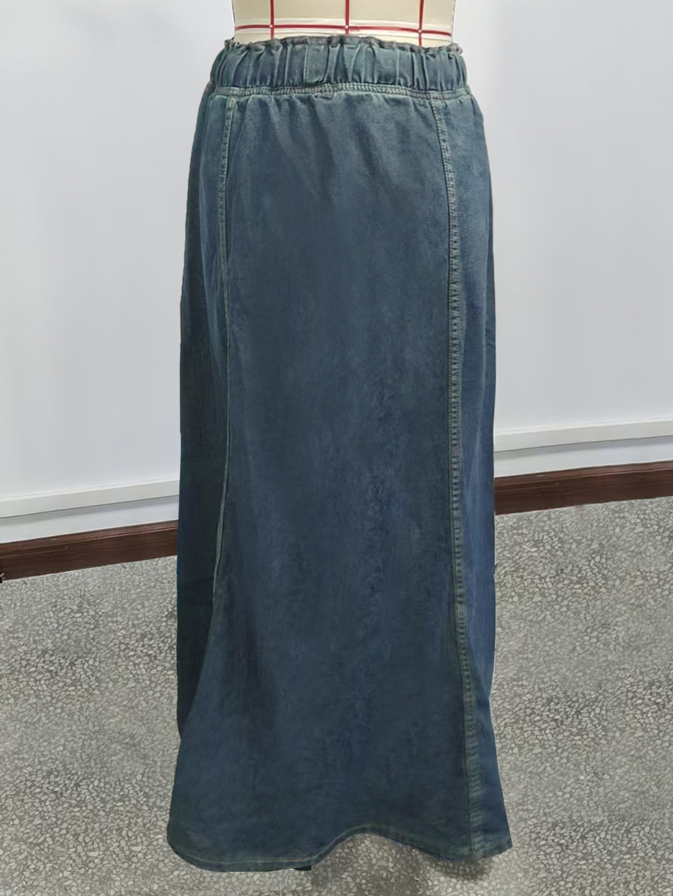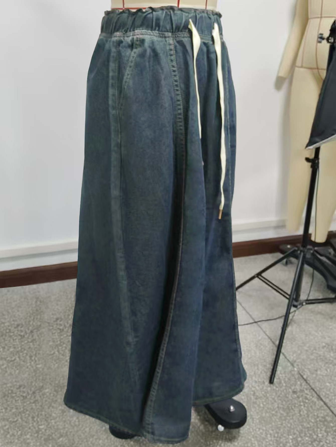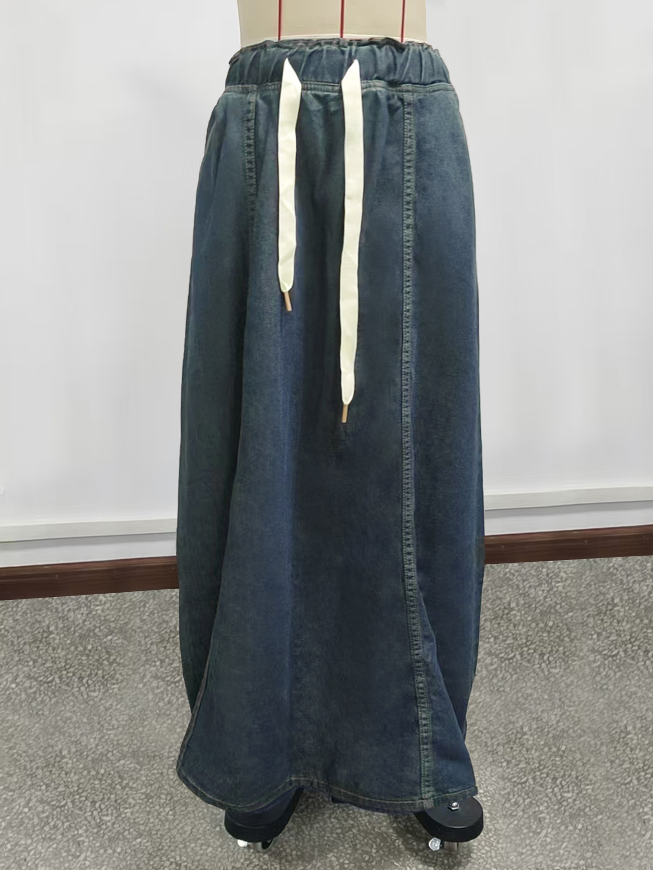 Yilu_European and American style fashionable stretch waist loose wide hem skirt, denim skirt, casual long skirt