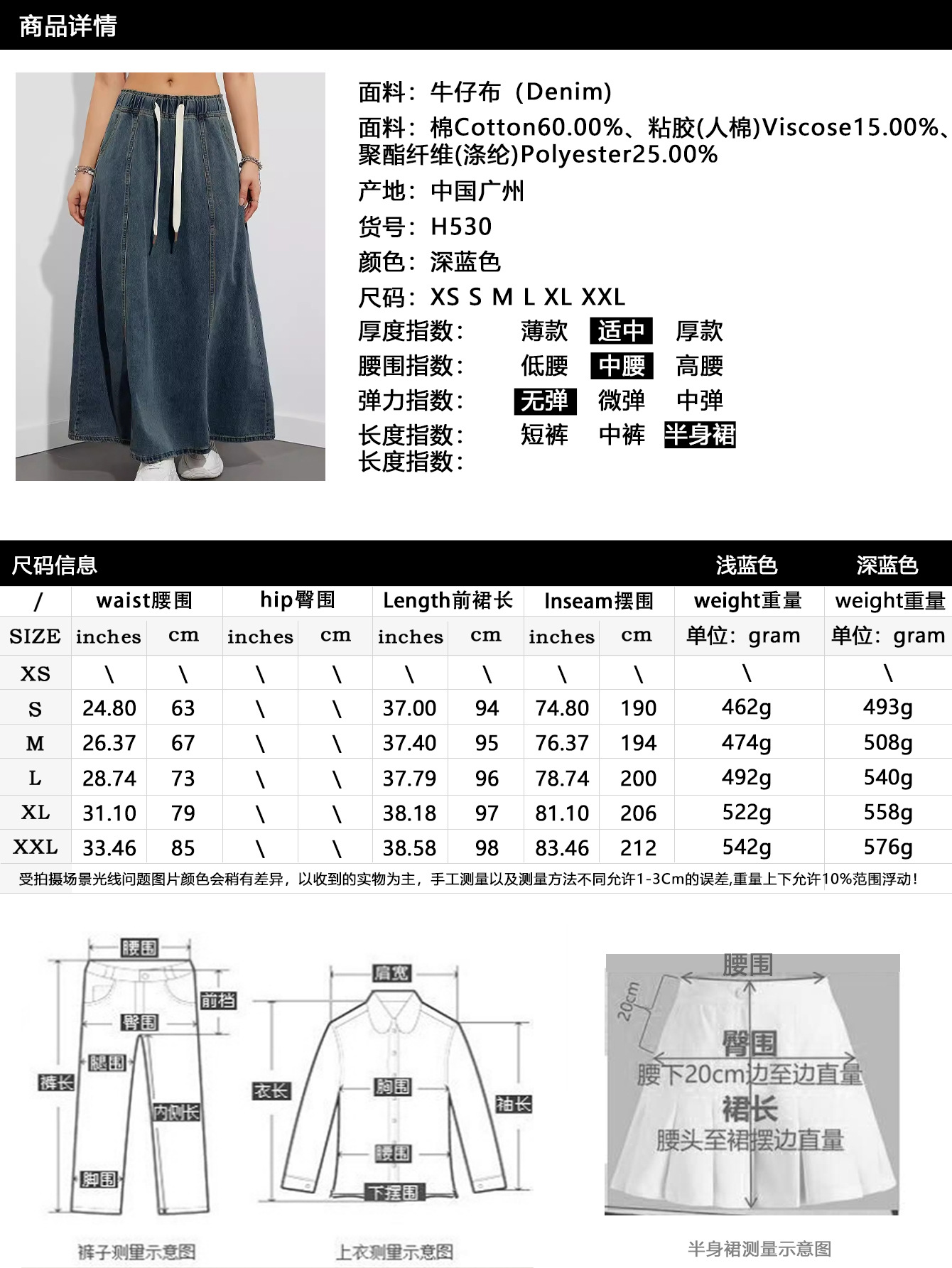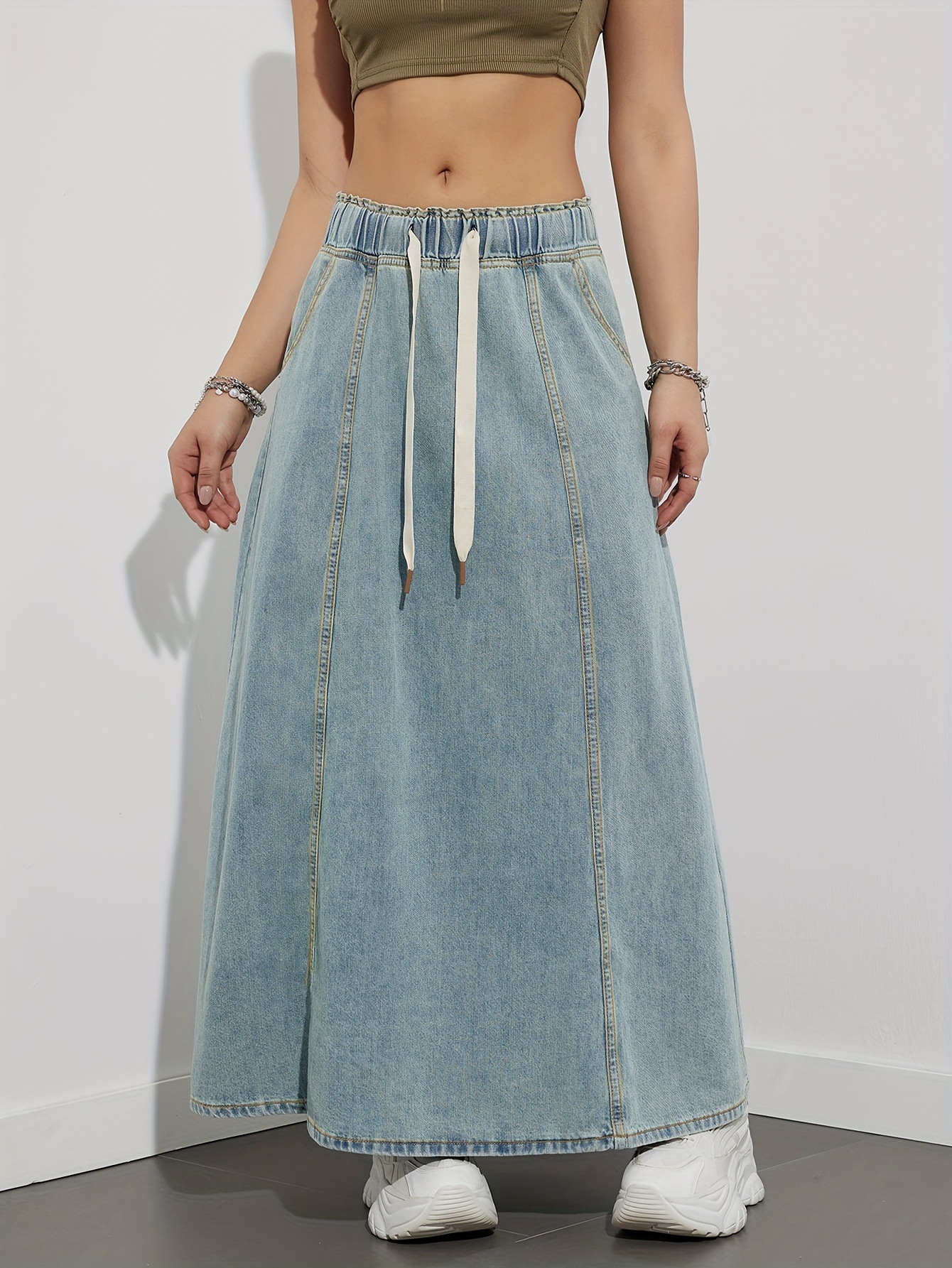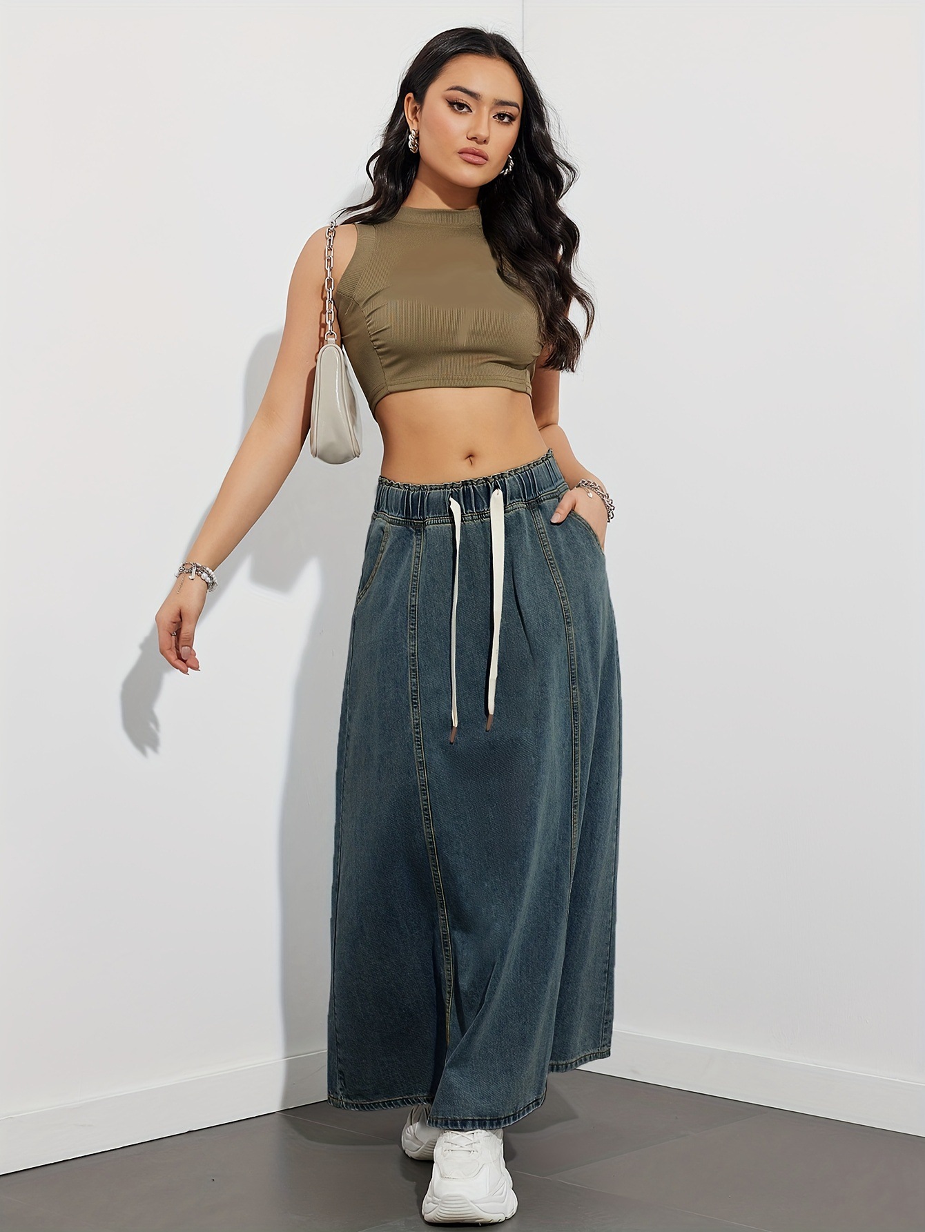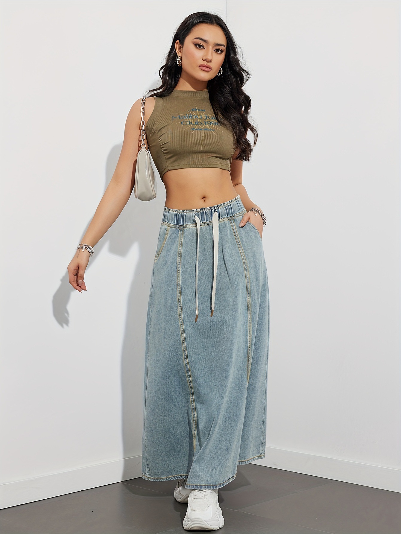 Yilu_European and American style fashionable stretch waist loose wide hem skirt, denim skirt, casual long skirt