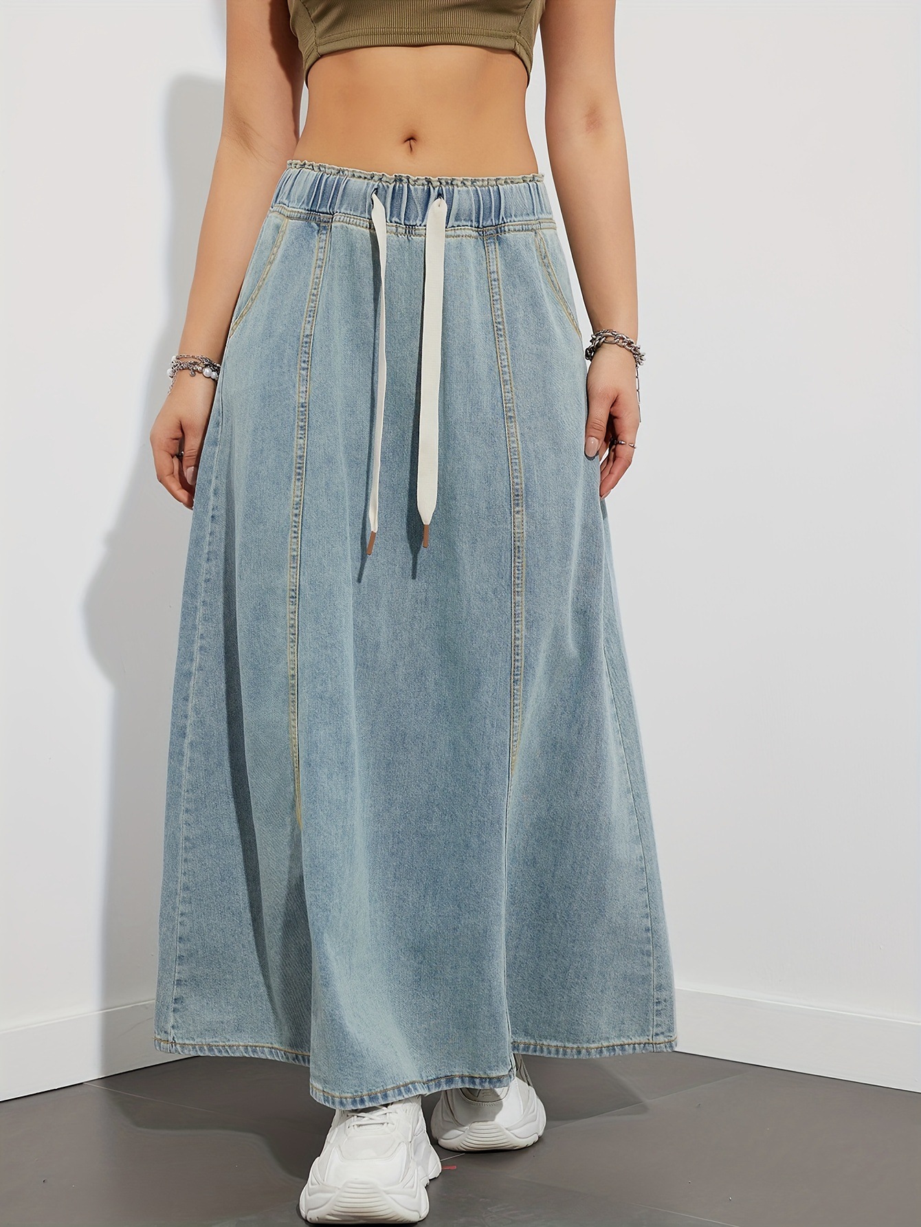 Style: Fashionable elastic waist, loose wide hem skirt, denim casual long dress