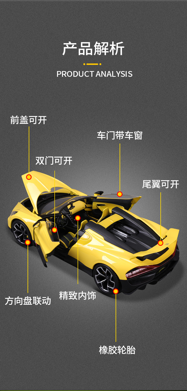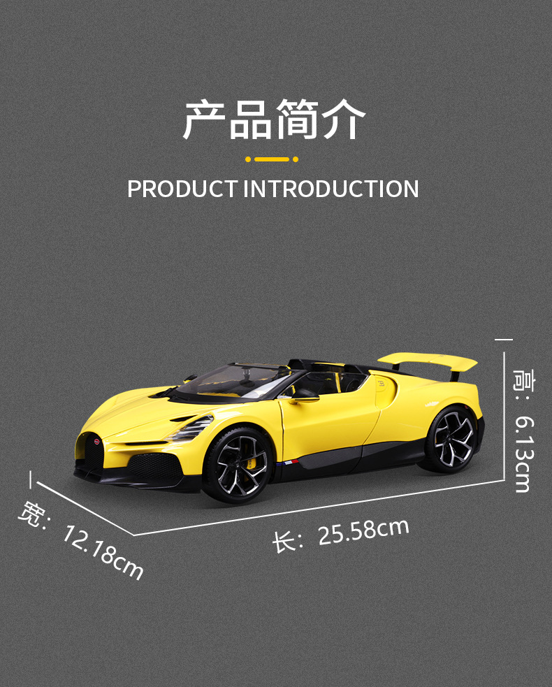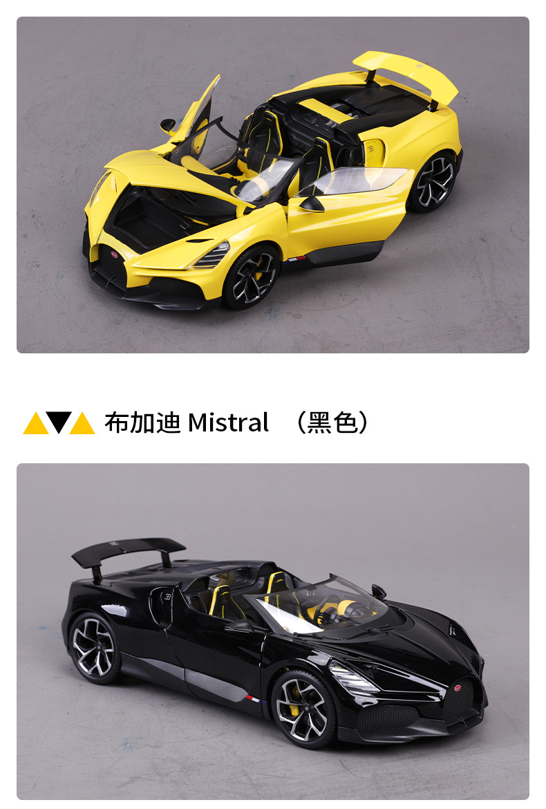 High-quality 1:18 Bugatti Mistral alloy car model figurine