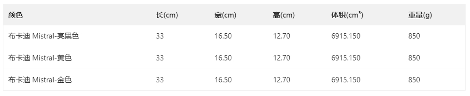 布卡迪 Mistral-亮黑色_11051_01 ,布卡迪 Mistral-金色_11051_03 ,布卡迪 Mistral-黄色_11051_02 |