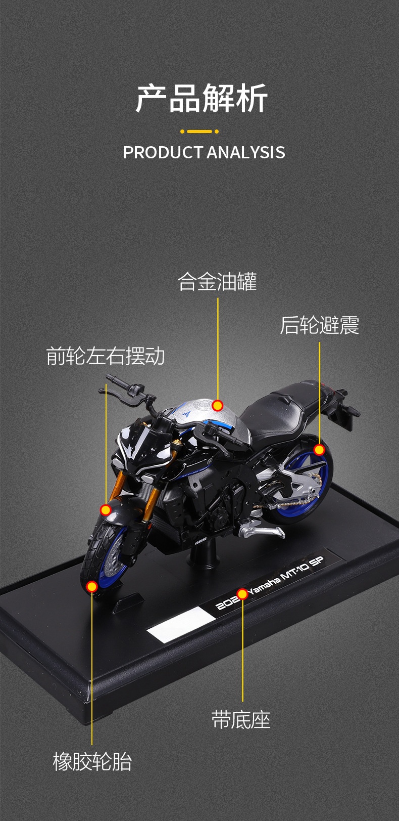 High-quality 1:18 Yamaha MT-10SP replica alloy motorcycle