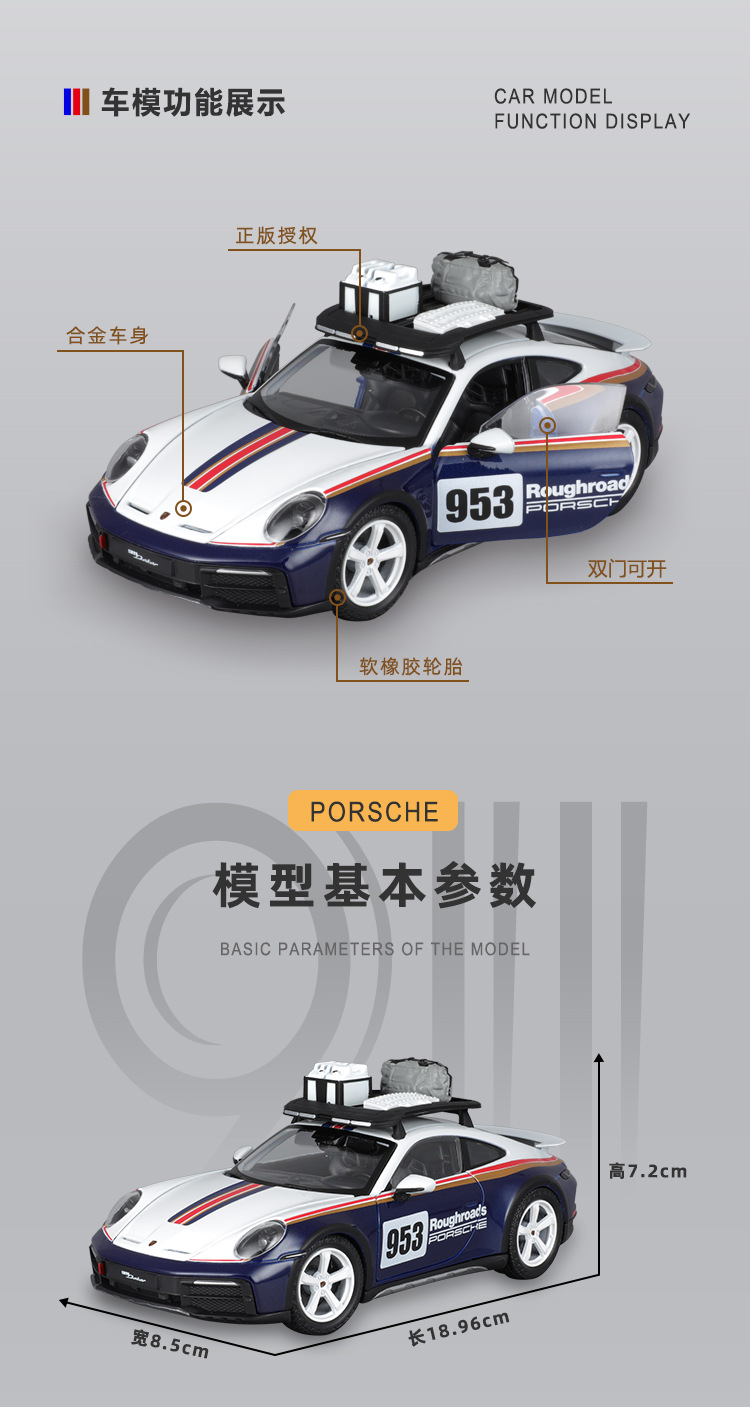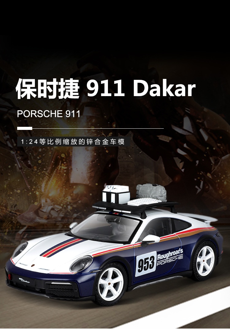High-quality 1:24 Porsche Dakar 953 car model alloy car model sports car decorative item
