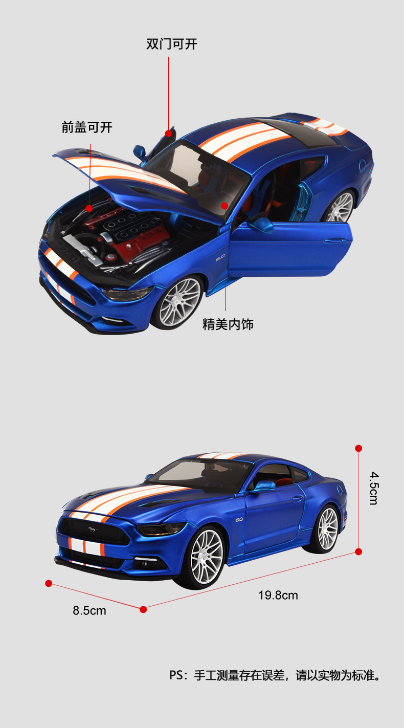 High-quality 2015 Ford Mustang 1:24 GT car model metal car figurine