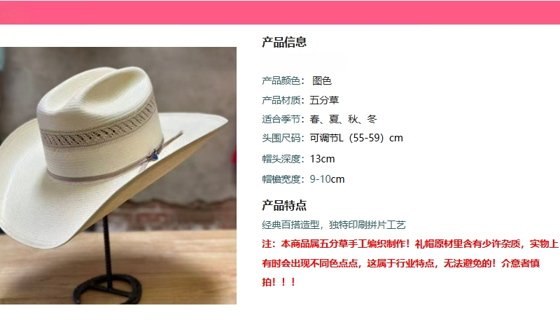 High-quality best-selling hard-edge hand-woven formal hats, such as cowboy hats, denim hats, with a five-inch finely-woven rolled brim.