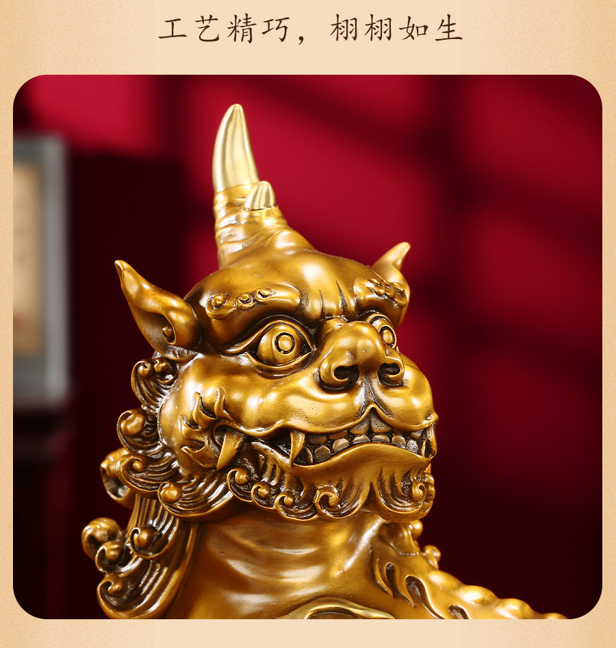 High-quality brass mythical beast “Tie Xin” decorative piece. Office and home gift.