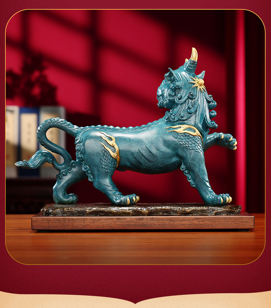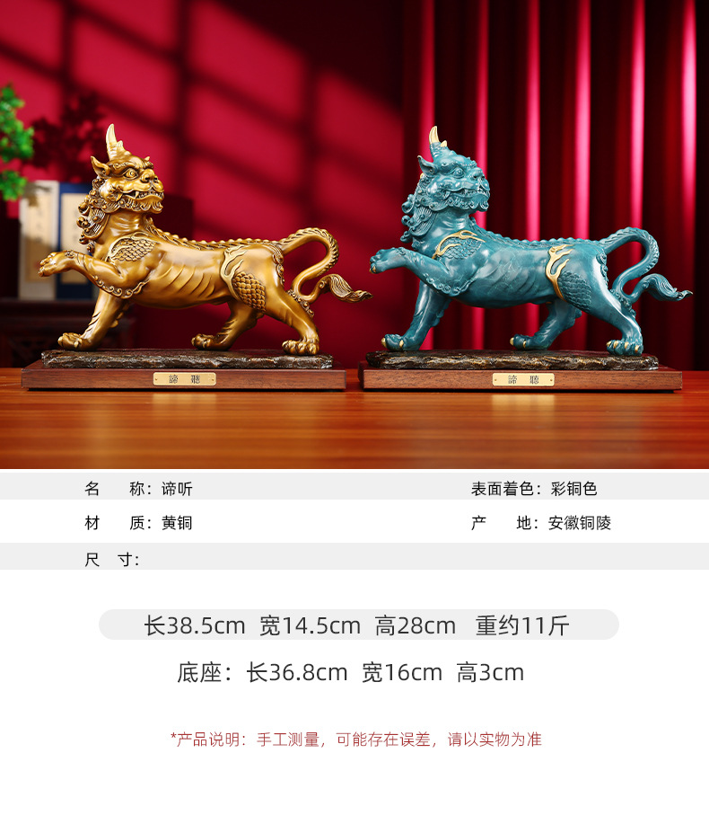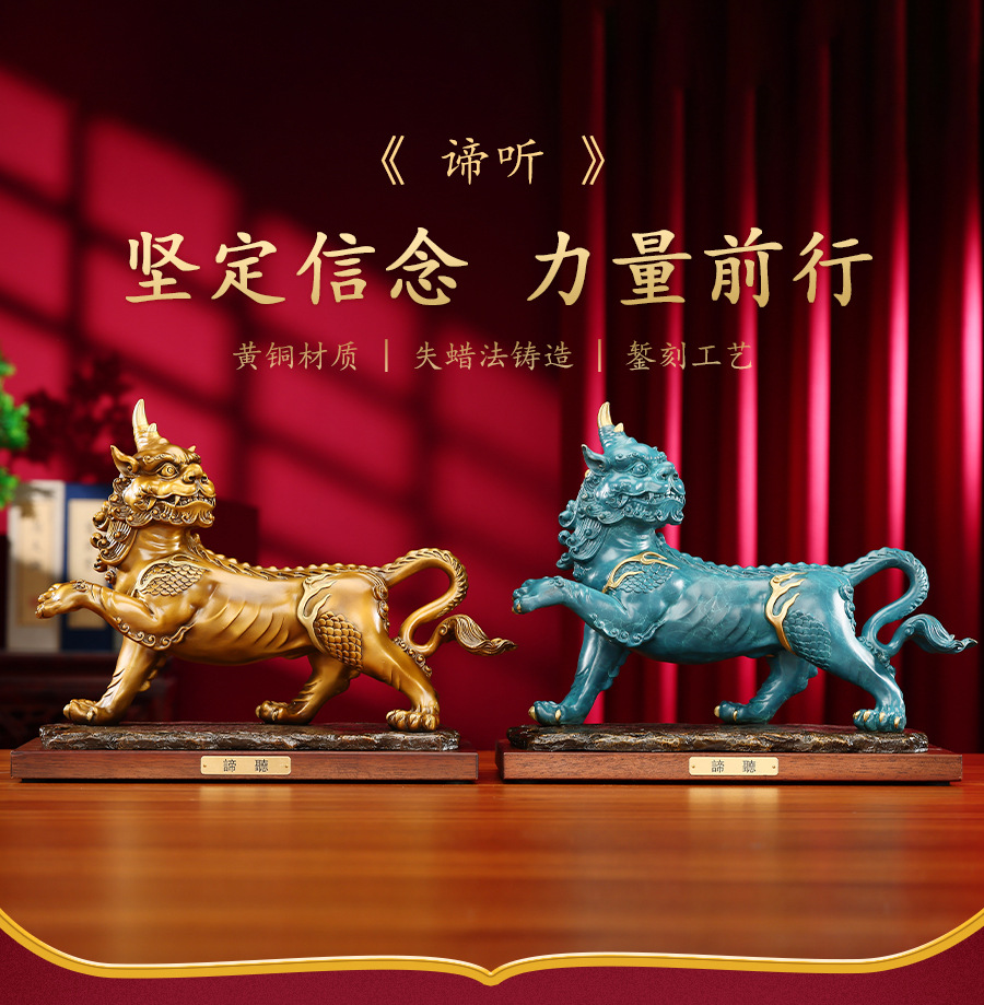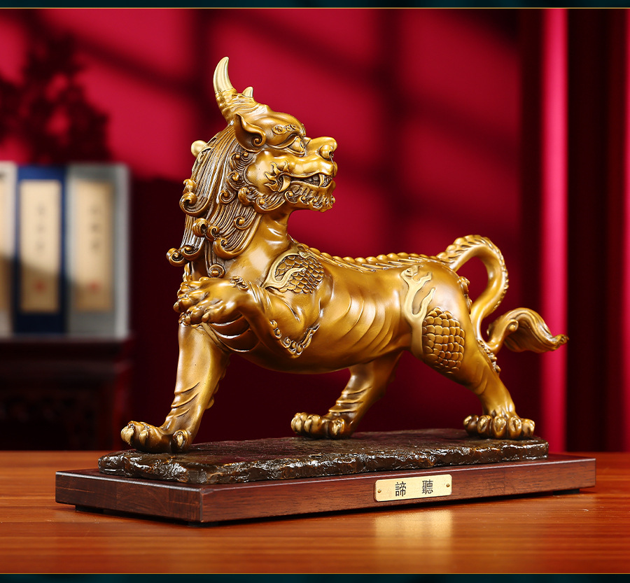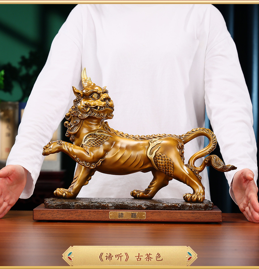 High-quality brass mythical beast “Tie Xin” decorative piece. Office and home gift.