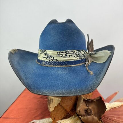 High-quality cross-border denim hat ribbed trim decoration pure wool denim felt hat western carnival sheepskin denim hat