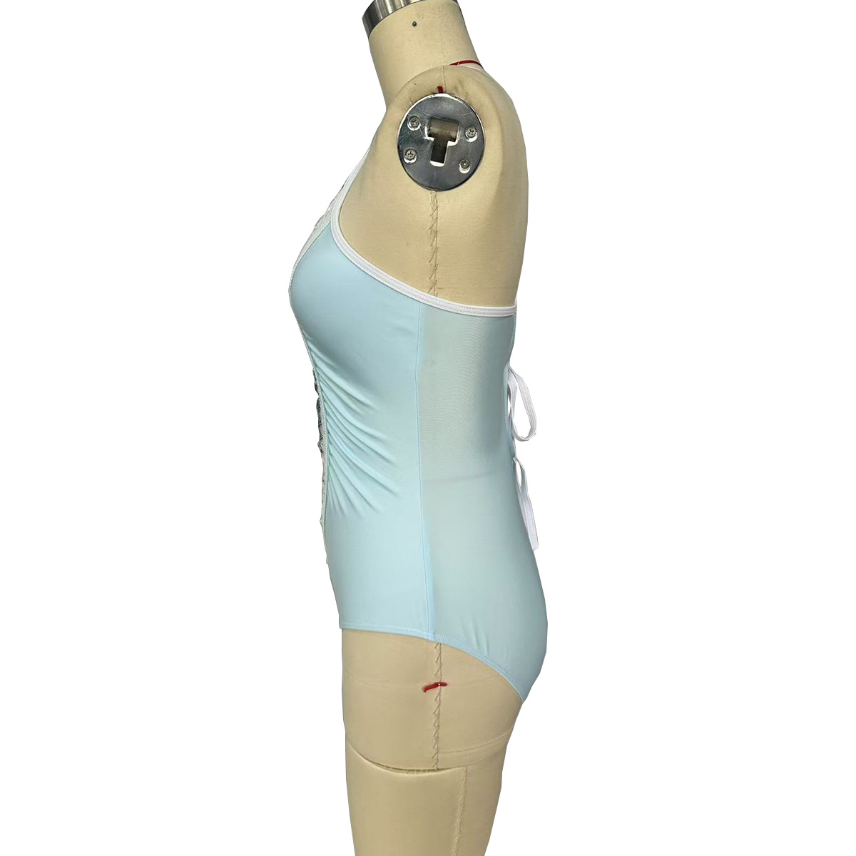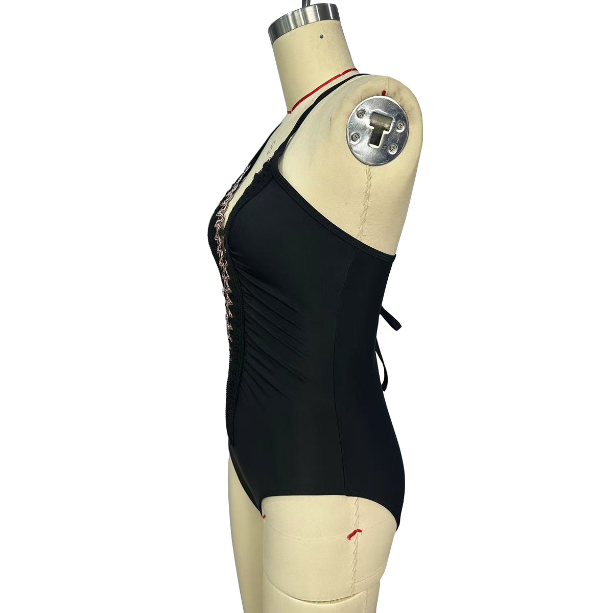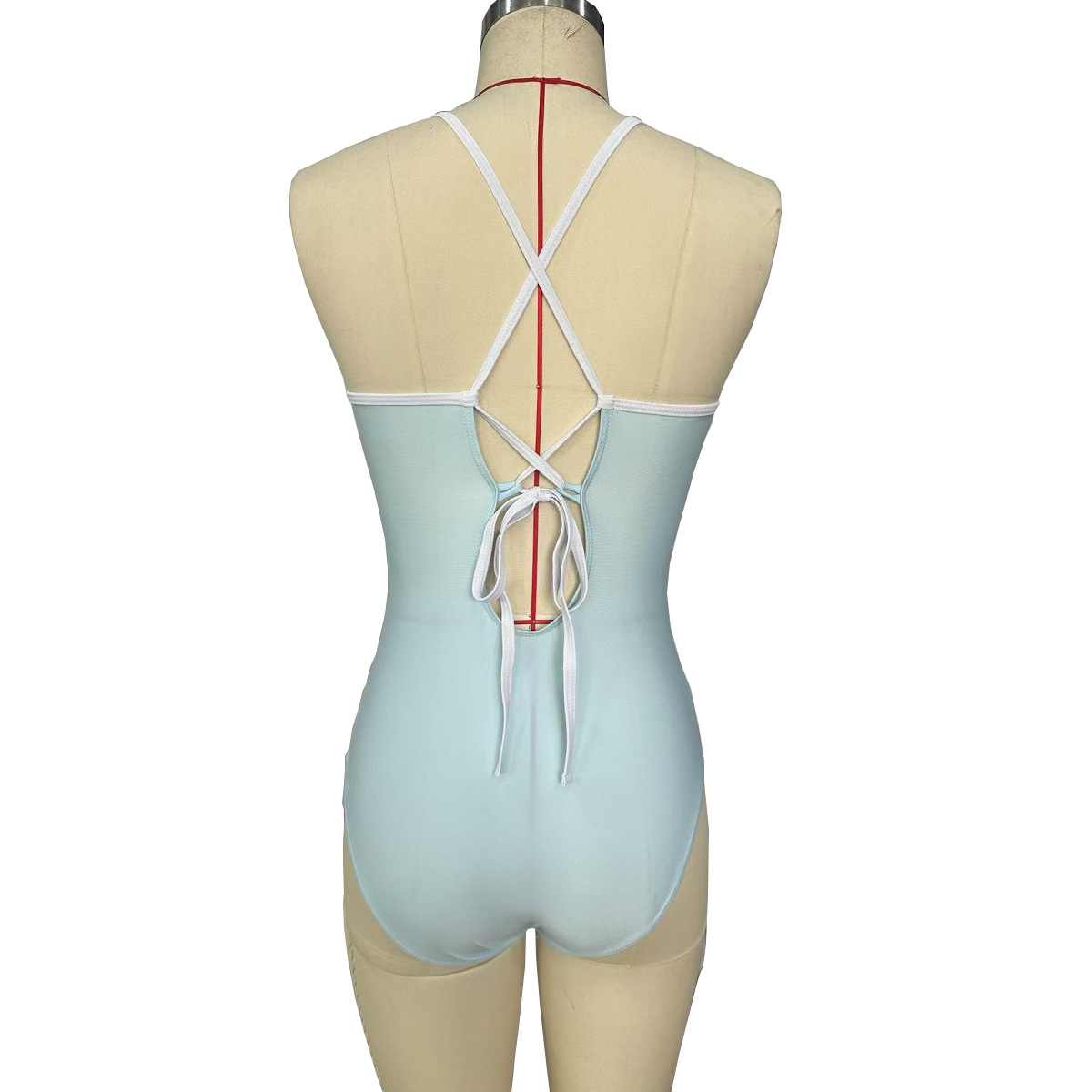 High-quality deep V-neck figure-hugging swimming suit with backless and drawstring design, one-piece women’s swimming suit