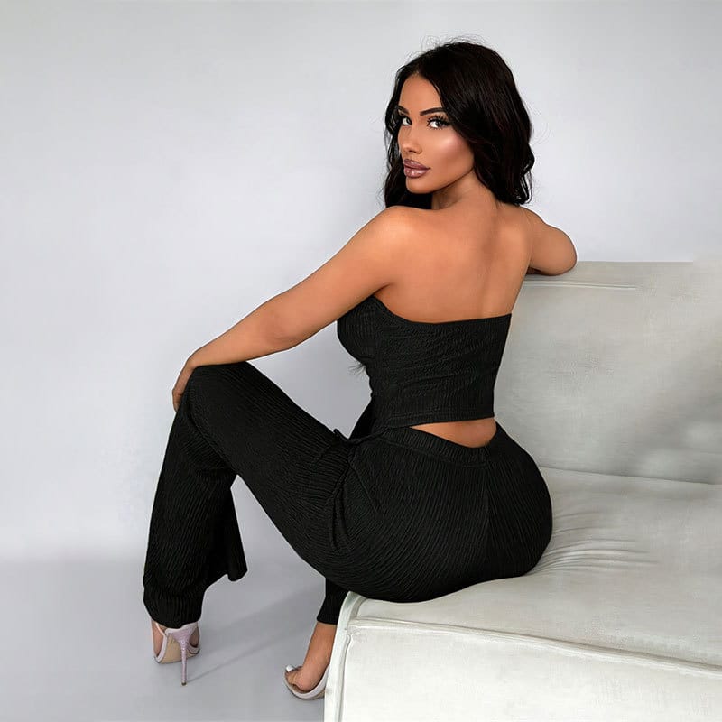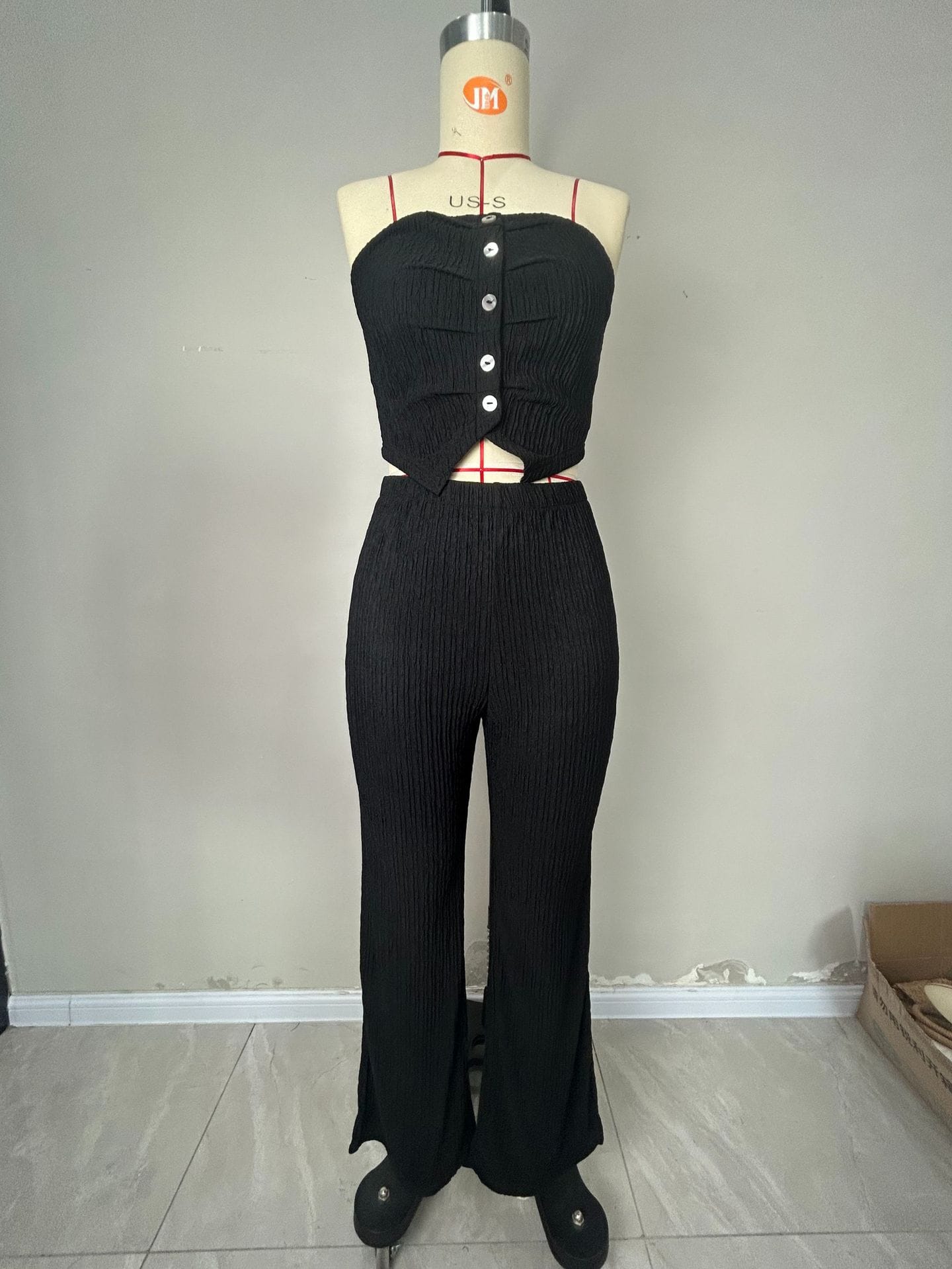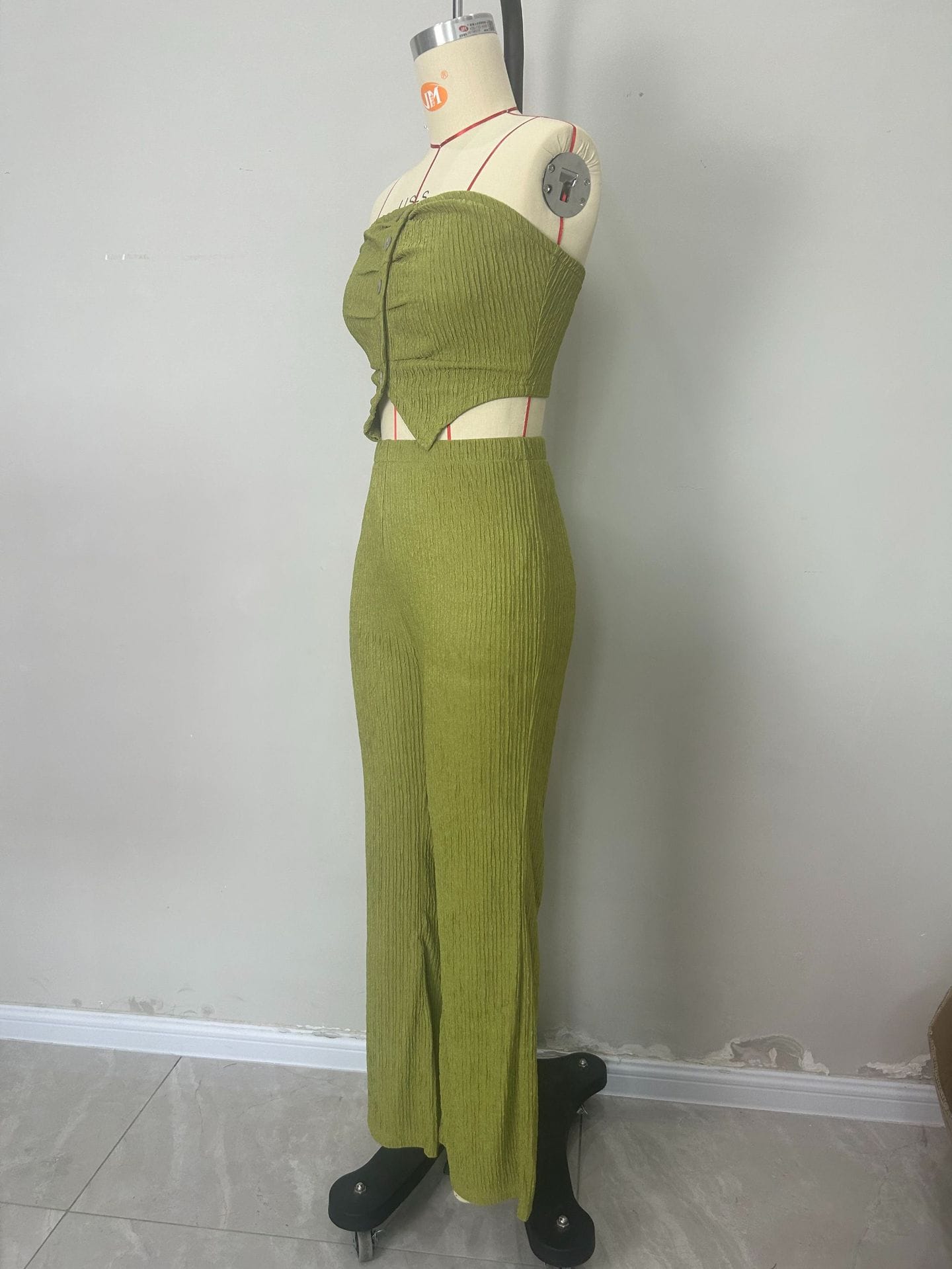 Yilu_High-quality elastic buttons decorate the plunging trumpet-style casual pants set