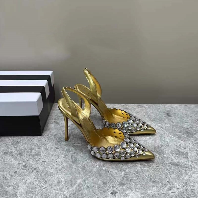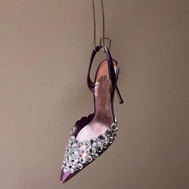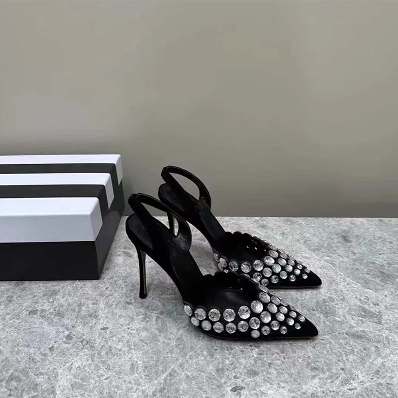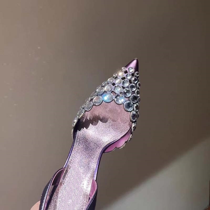 Yilu_High-quality exquisite water droplet-shaped rhinestone low-cut thin-soled pointed-toe shoes for women, Roman-style hollowed-out high-heeled women’s sandals