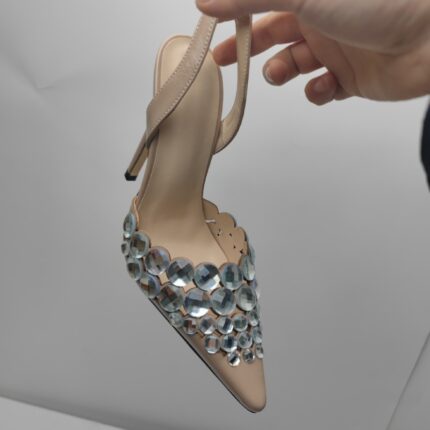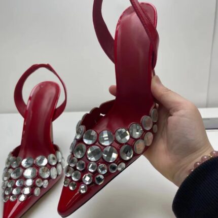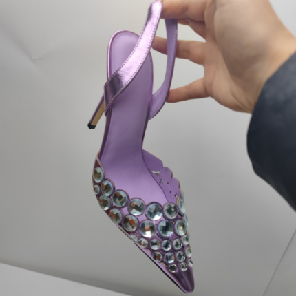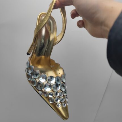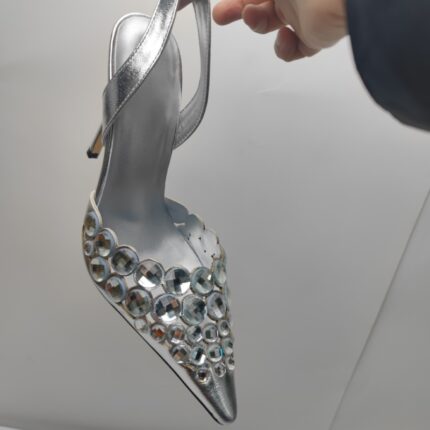 Yilu_High-quality exquisite water droplet-shaped rhinestone low-cut thin-soled pointed-toe shoes for women, Roman-style hollowed-out high-heeled women’s sandals