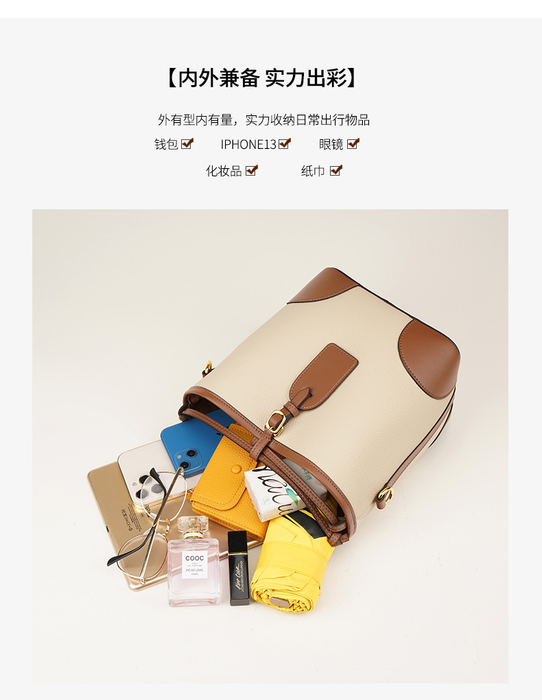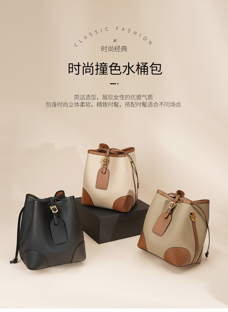 Yilu_High-quality fashionable color-matched bucket bag for women with drawstring strap
