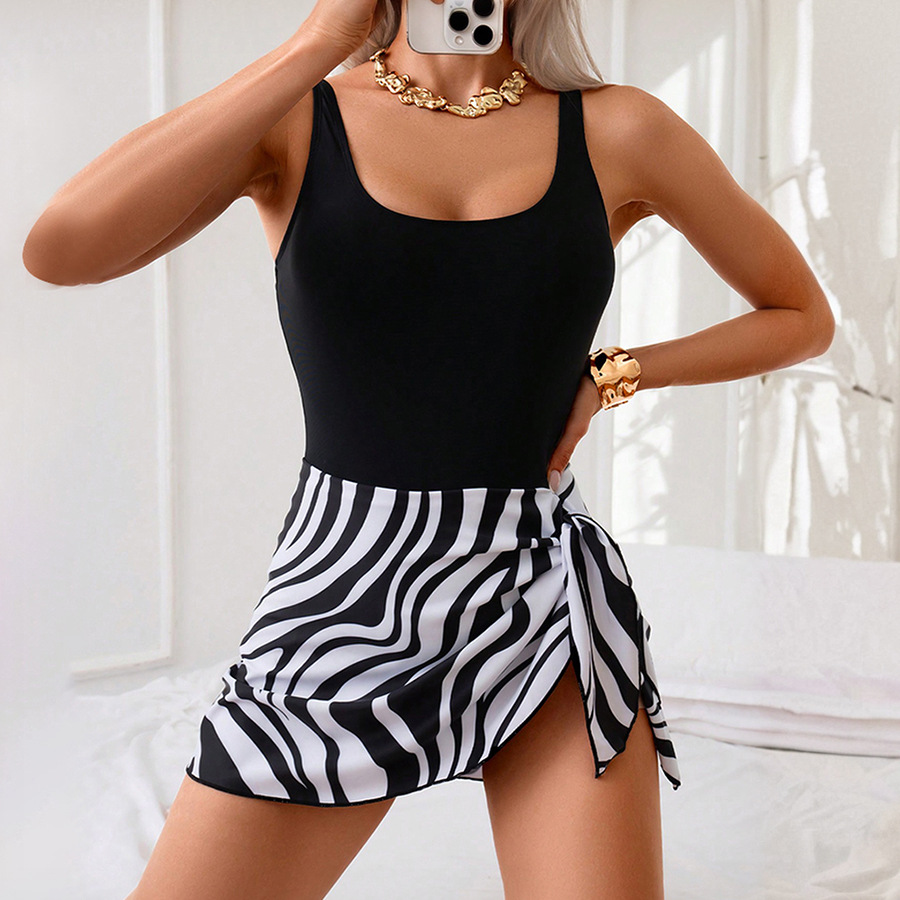 High-quality feminine figure-hugging swimsuit with printed design, suitable for export to Europe and America, one-piece swimsuit for women