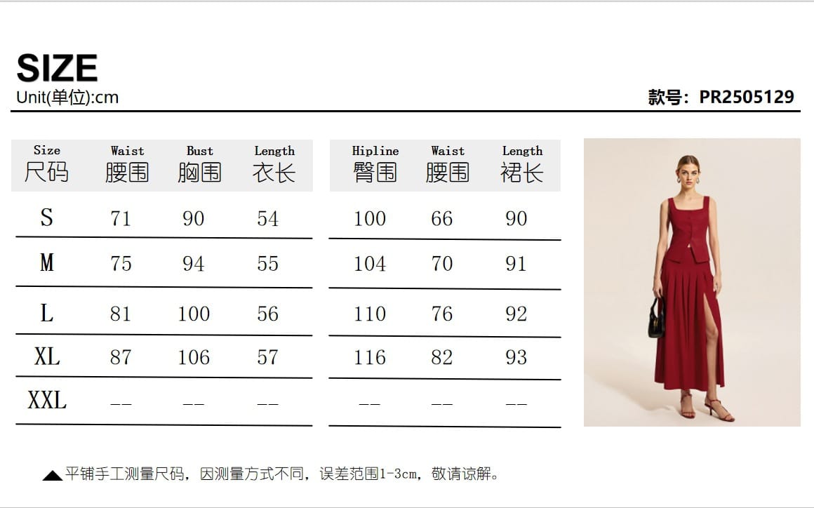 Yilu_High-quality fitted sleeveless blouse with large slit skirt set