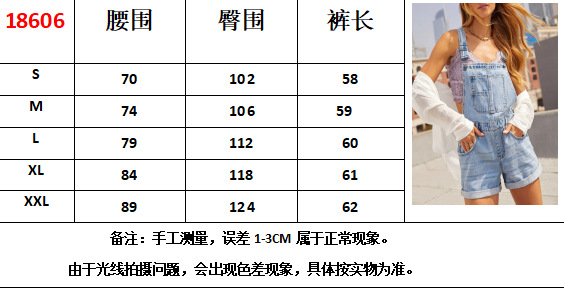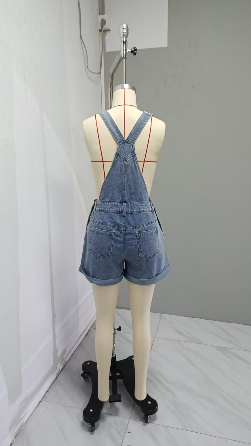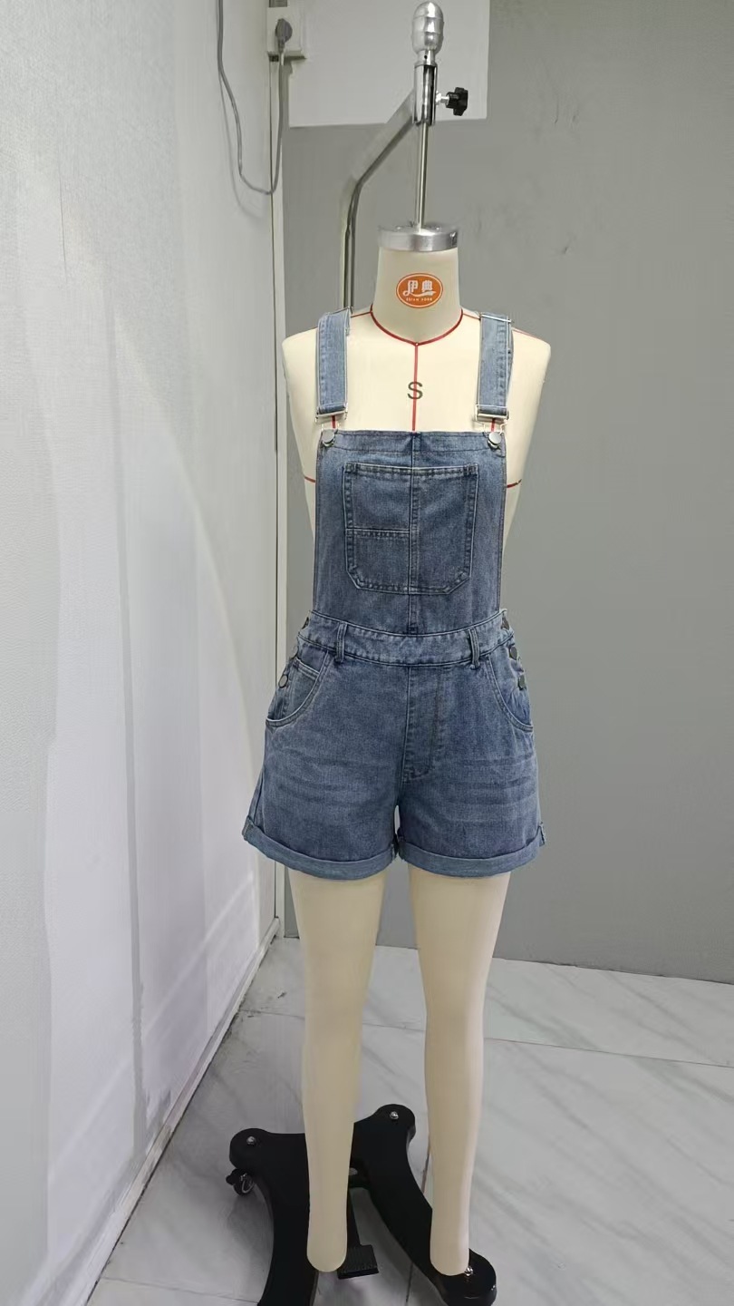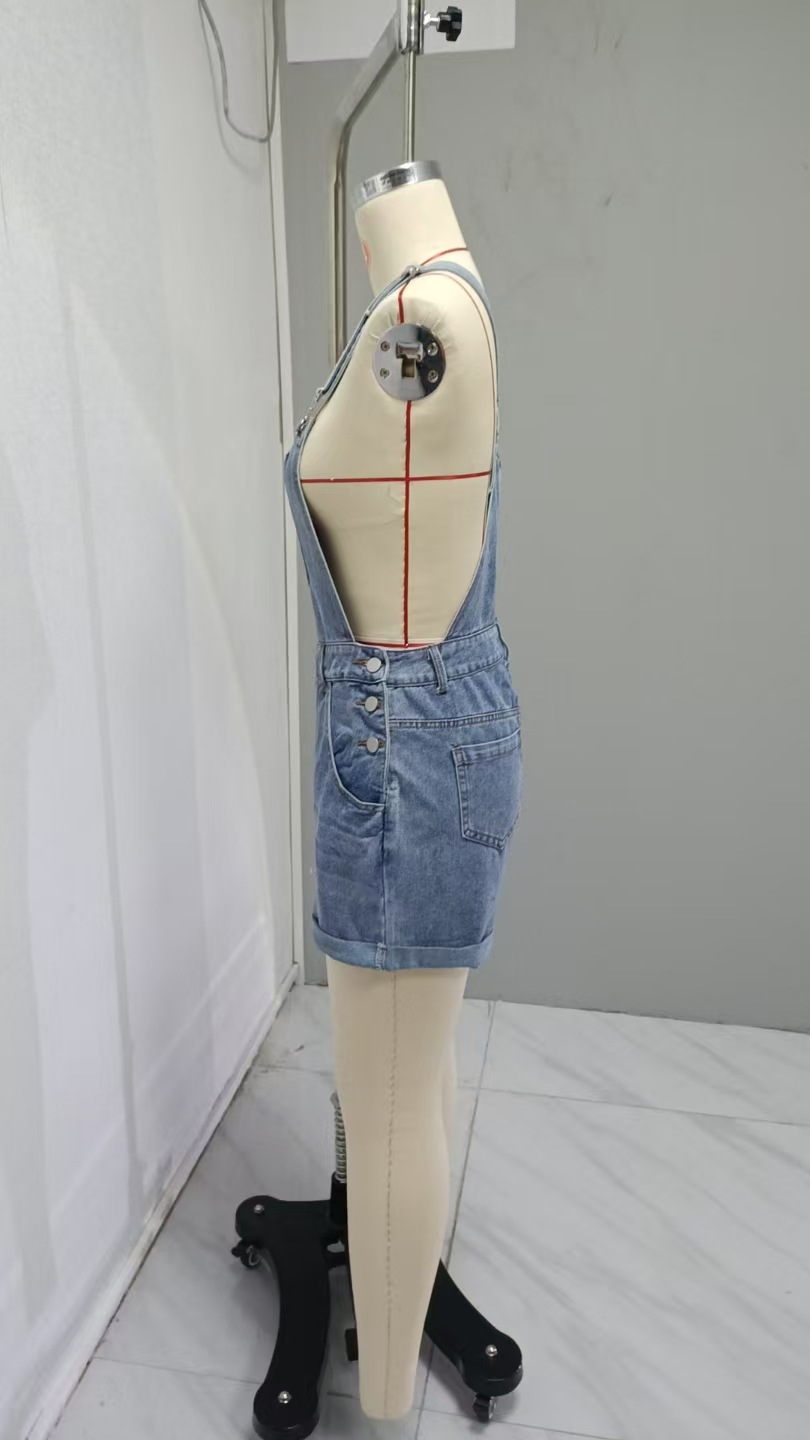 Yilu_High-quality halter pants in light blue. Simple and loose multi-pocket denim one-piece pants for women.