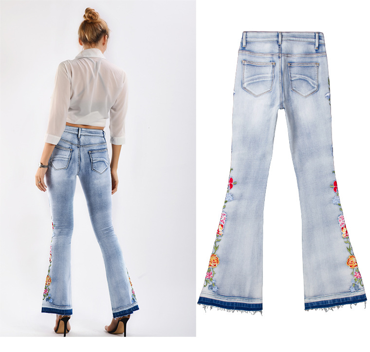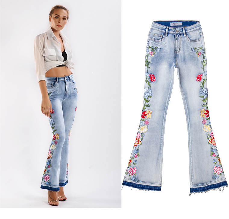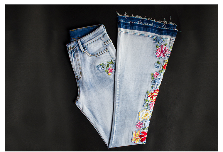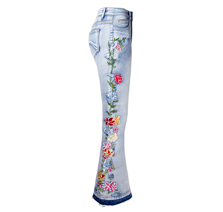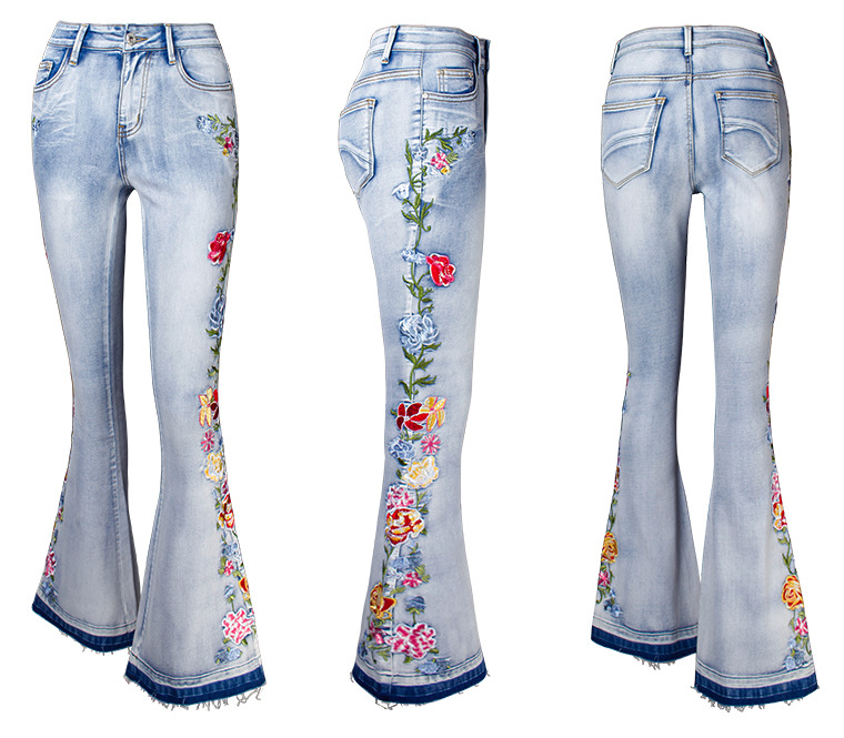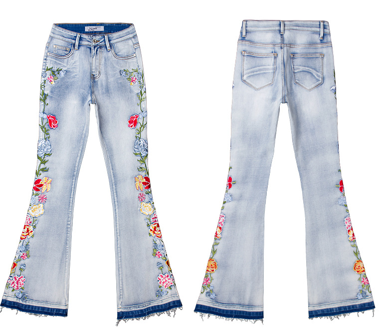 Style: Utilizing fashionable three-dimensional embroidery technique, denim flared pants, warm and full of a free and unrestrained atmosphere