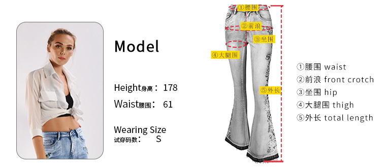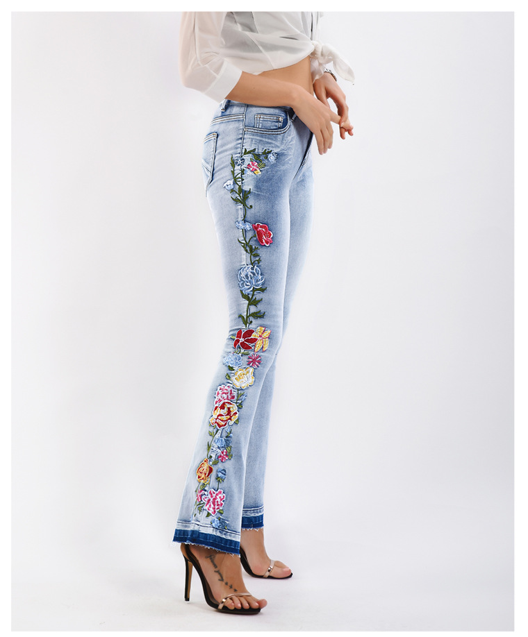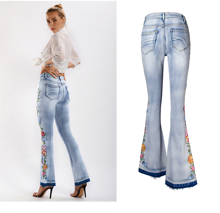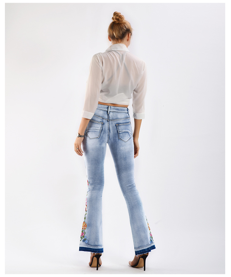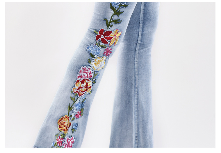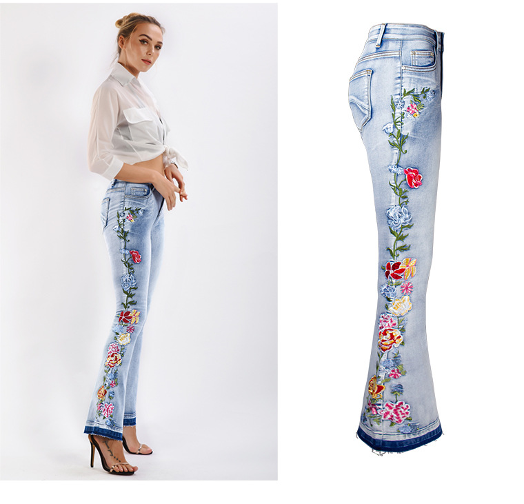 Style: Utilizing fashionable three-dimensional embroidery technique, denim flared pants, warm and full of a free and unrestrained atmosphere