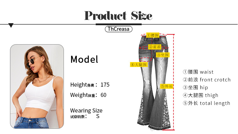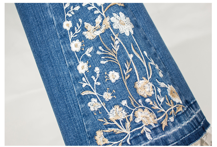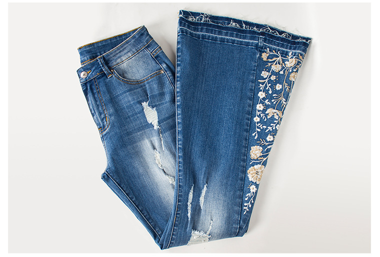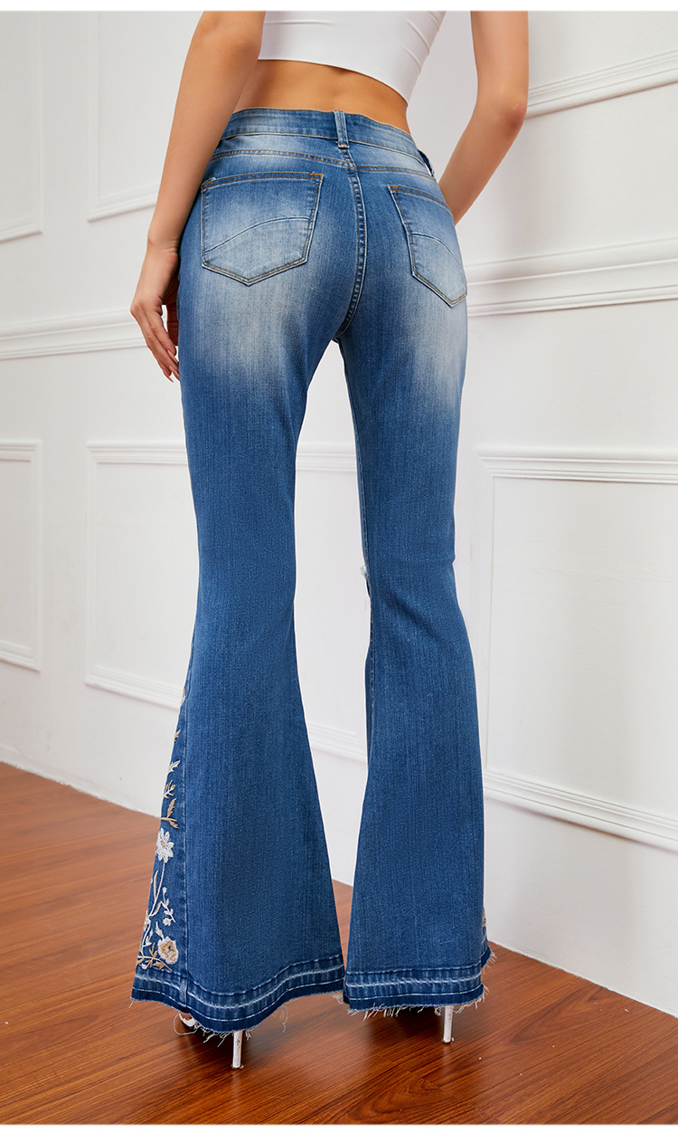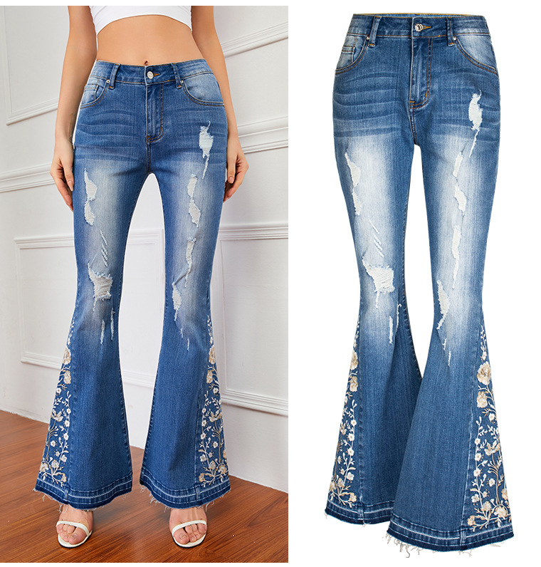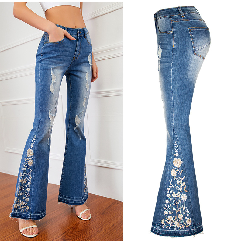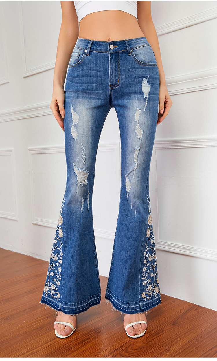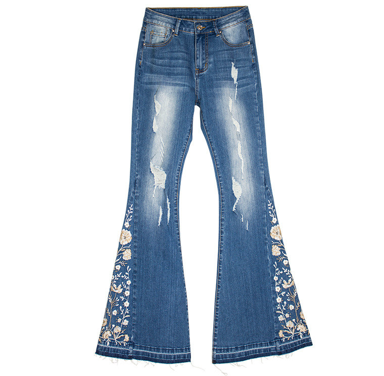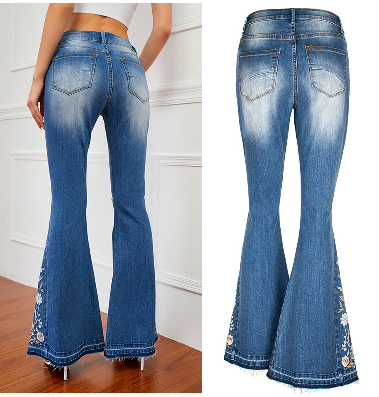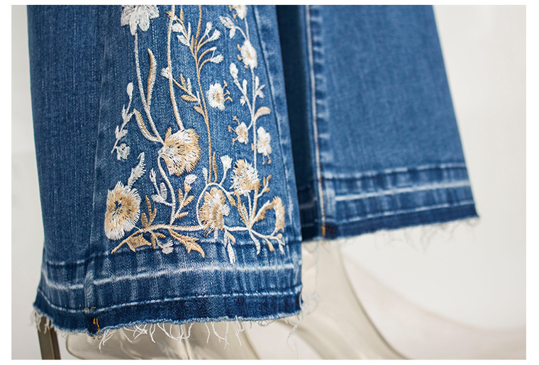 Style: Utilizing fashionable three-dimensional embroidery technique, denim flared pants, warm and full of a free and unrestrained atmosphere