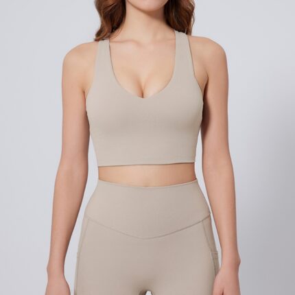 High-quality I-shaped shock-absorbing sports vest for women, suitable for running, sports bras with adjustable cups for yoga, and high-intensity sports underwear.