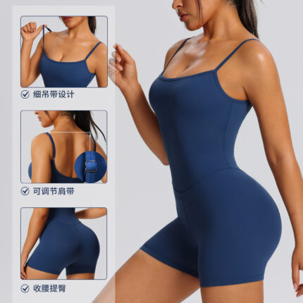 High-quality yoga one-piece women’s halter top with back support integrated fitness suit with adjustable design for exercise