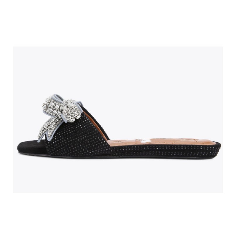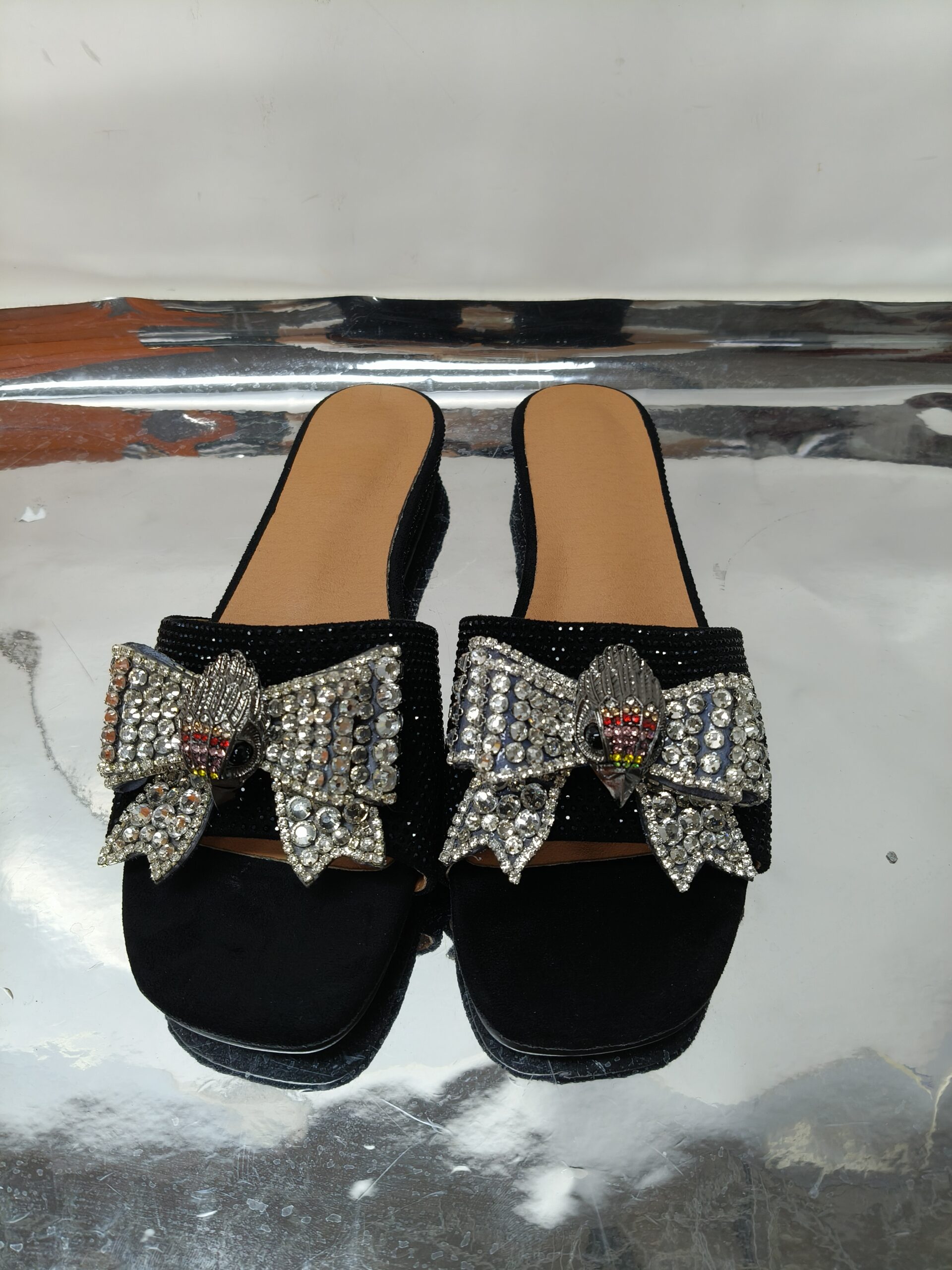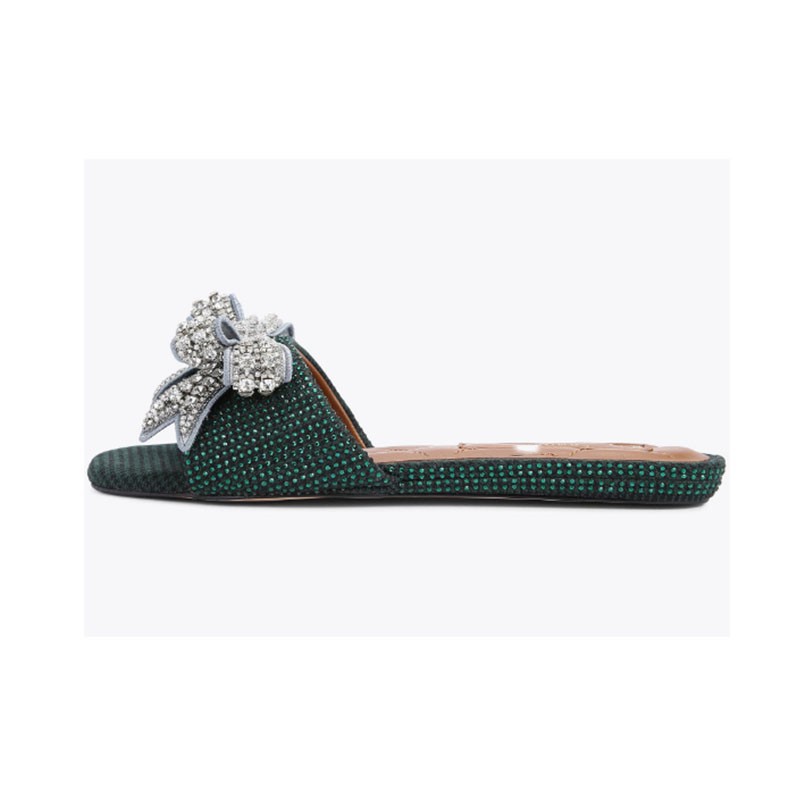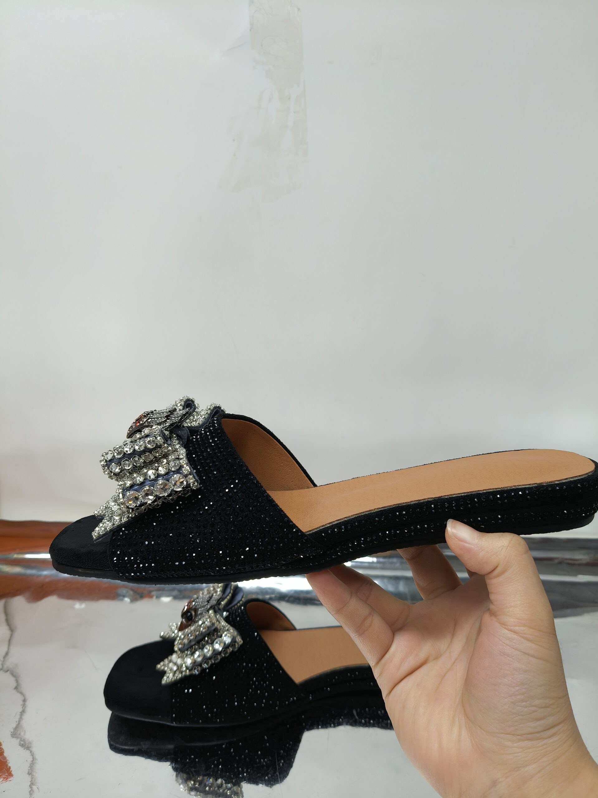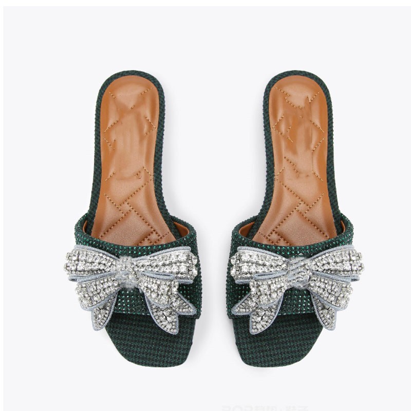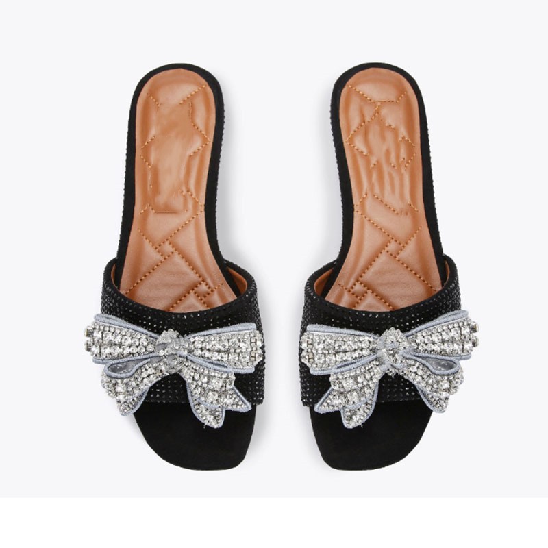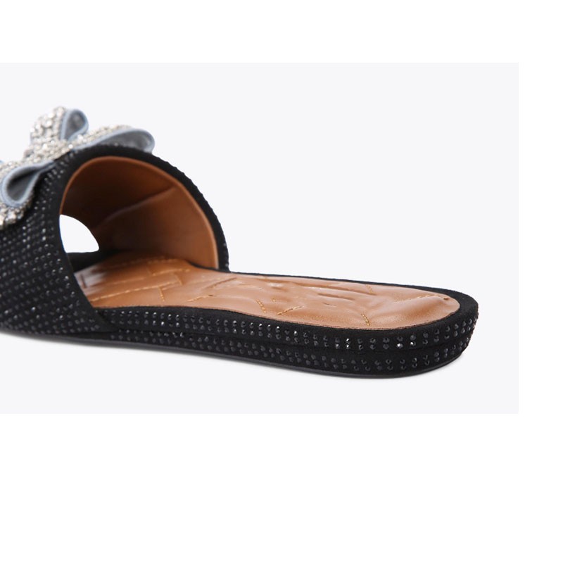 Yilu_High-quality interlayer round-toe fish-mouth back-striped metallic color denim-patterned flat-bottom large-size women's slippers