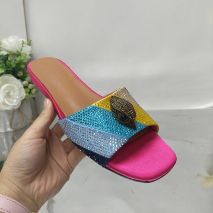 Yilu_High-quality interlayer round-toothed fish-mouth back-toe metallic color patchwork with rhinestone pattern flat-bottomed slip-on women’s shoes
