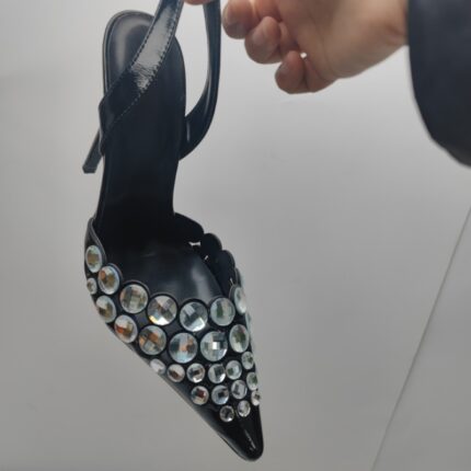 Yilu_High-quality exquisite water droplet-shaped rhinestone low-cut thin-soled pointed-toe shoes for women, Roman-style hollowed-out high-heeled women’s sandals