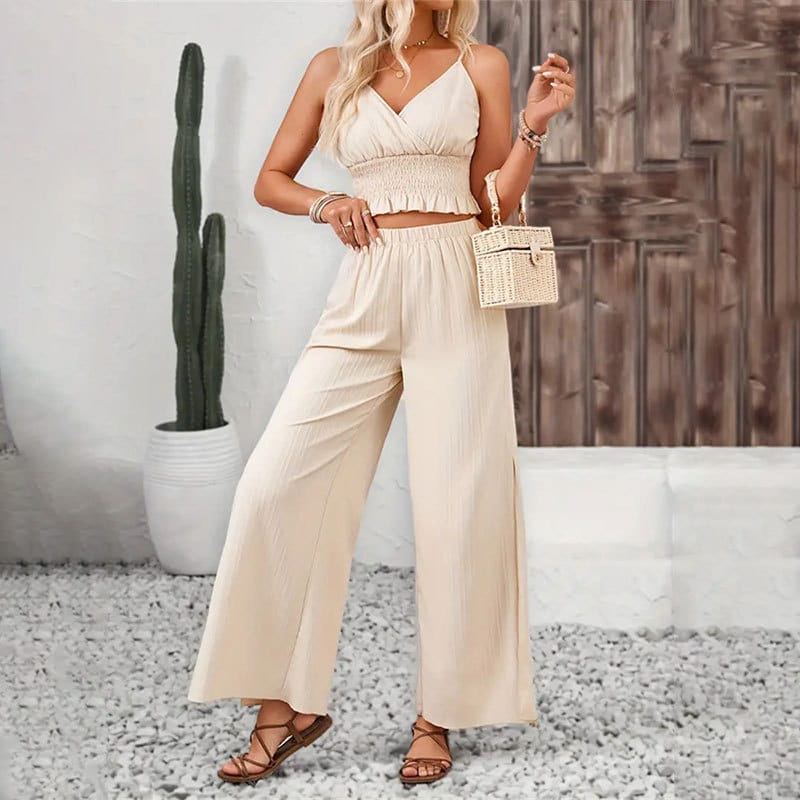 Yilu_High-quality jacquard striped ruched halter tube skirt split casual set