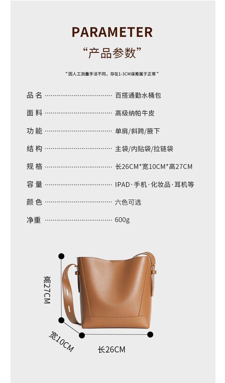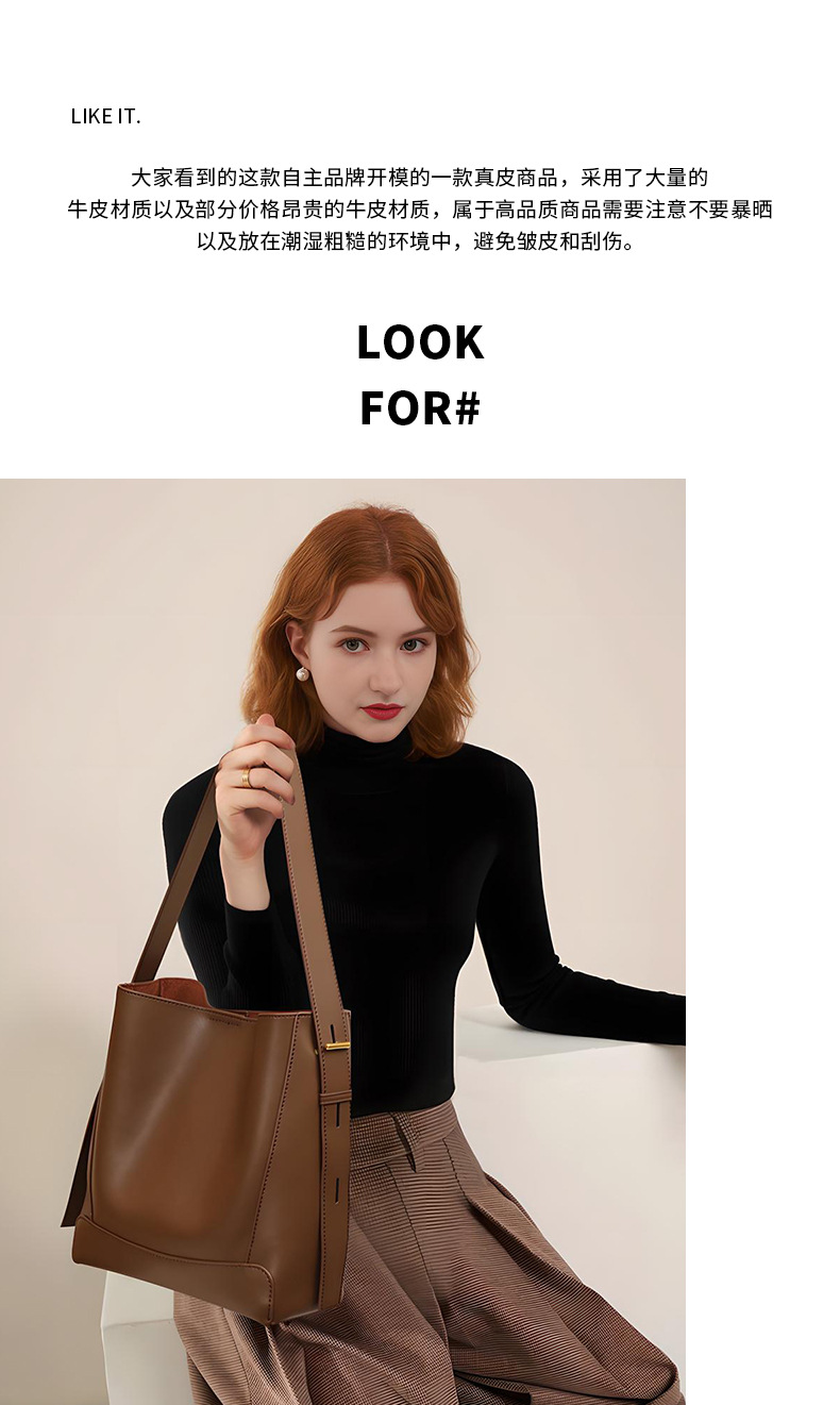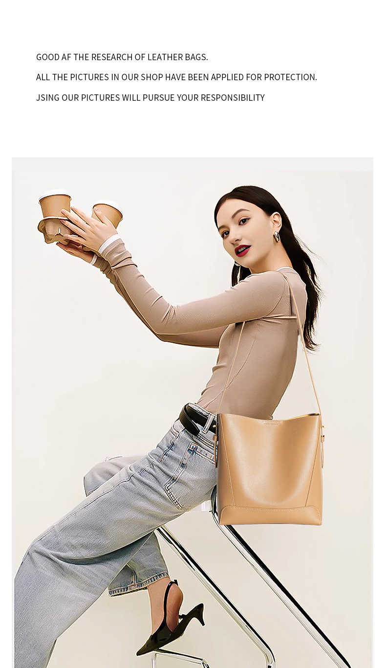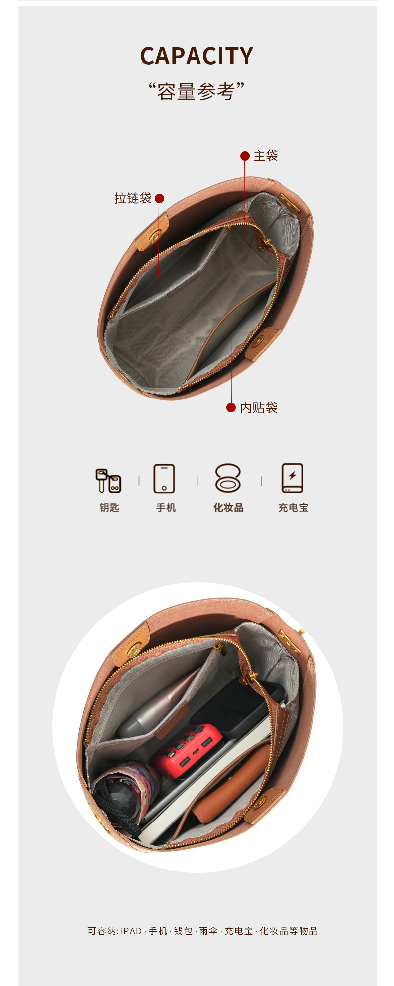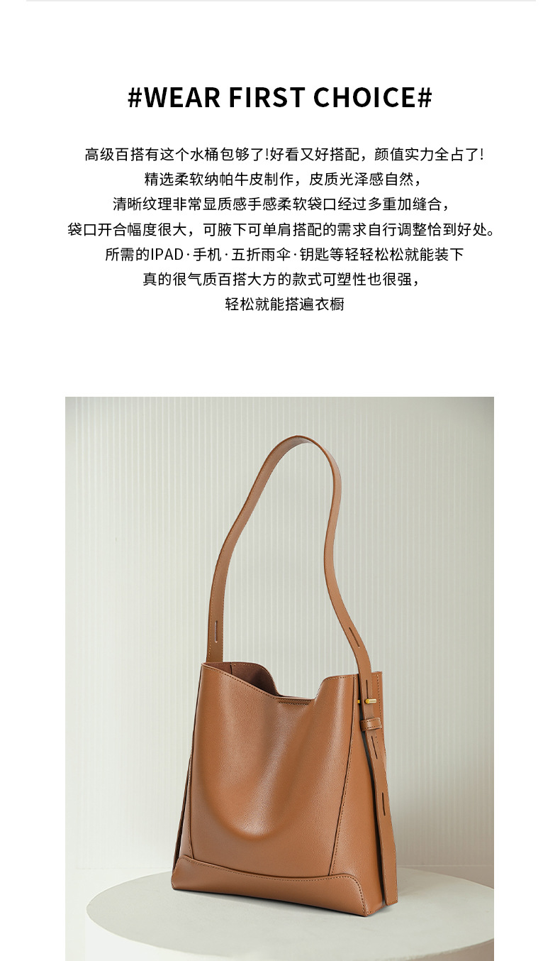 Yilu_High-quality, large-capacity, women’s genuine leather, high-end style crossbody bucket bag for women