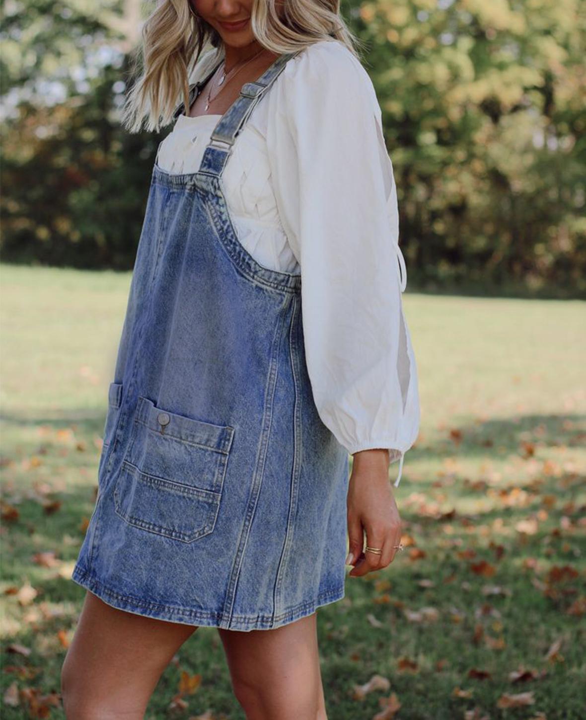 Yilu_High-quality loose-fitting denim halter top midi dress, sexy denim skirt
