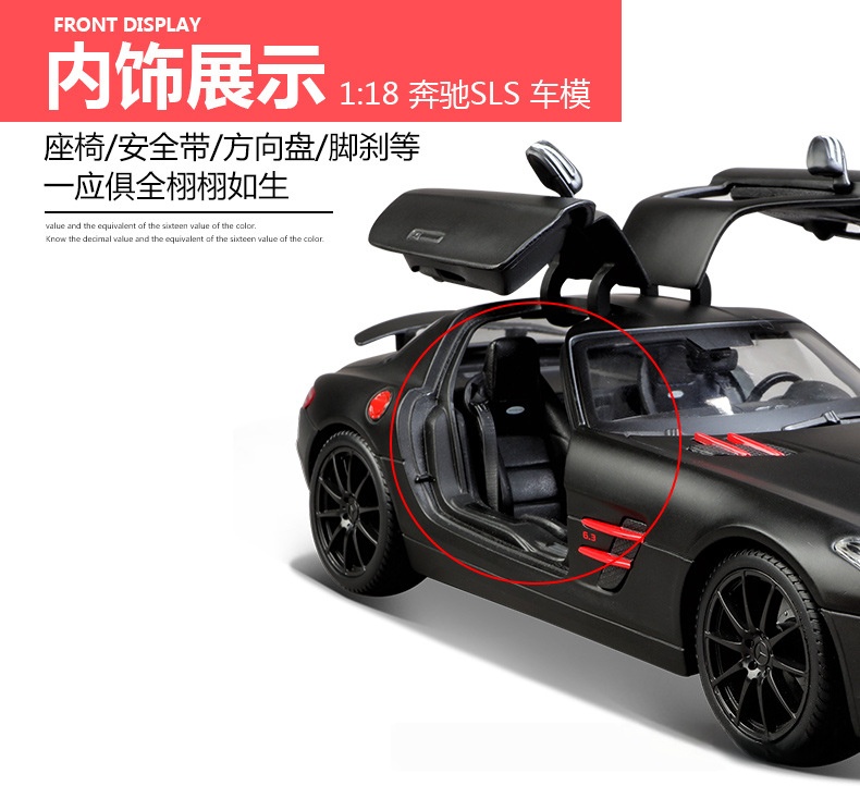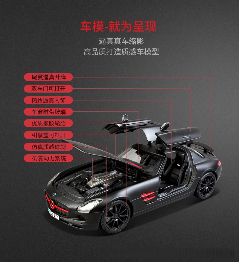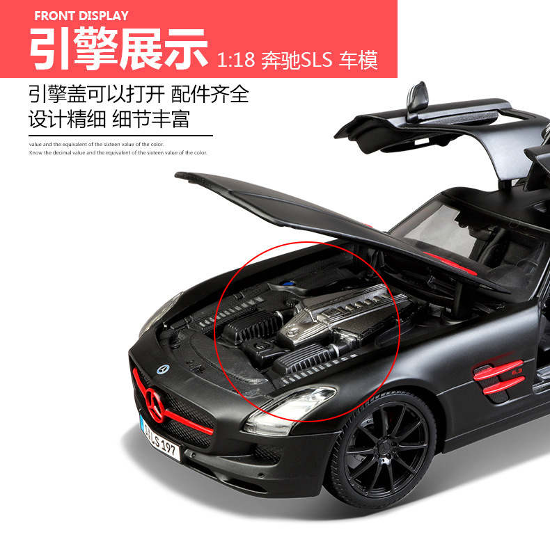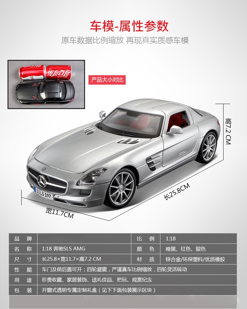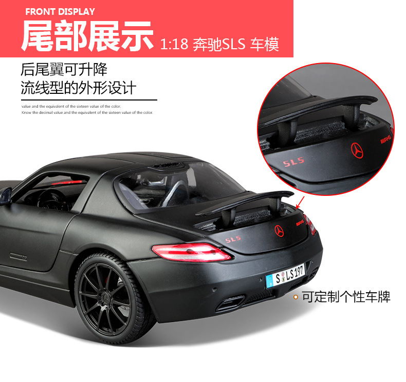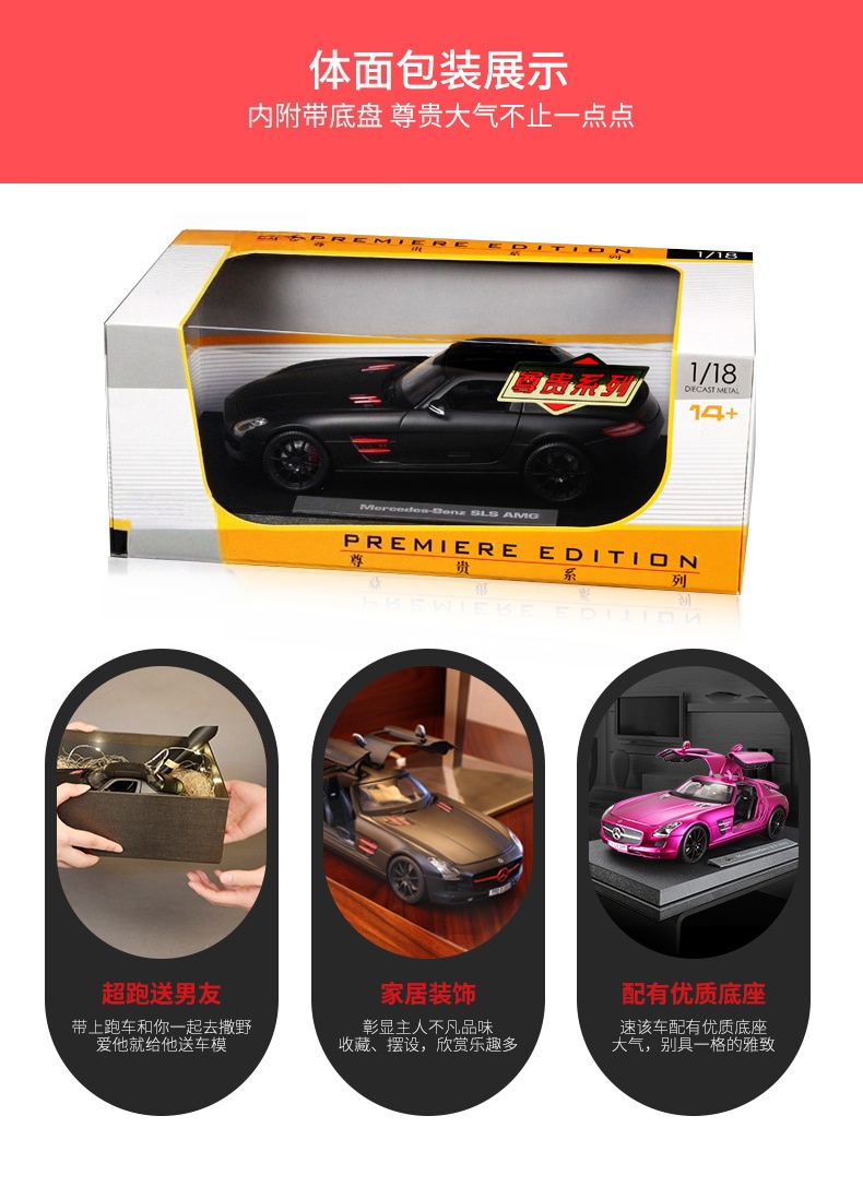 High-quality Mercedes SLS1:18 car model simulation alloy car model figurine