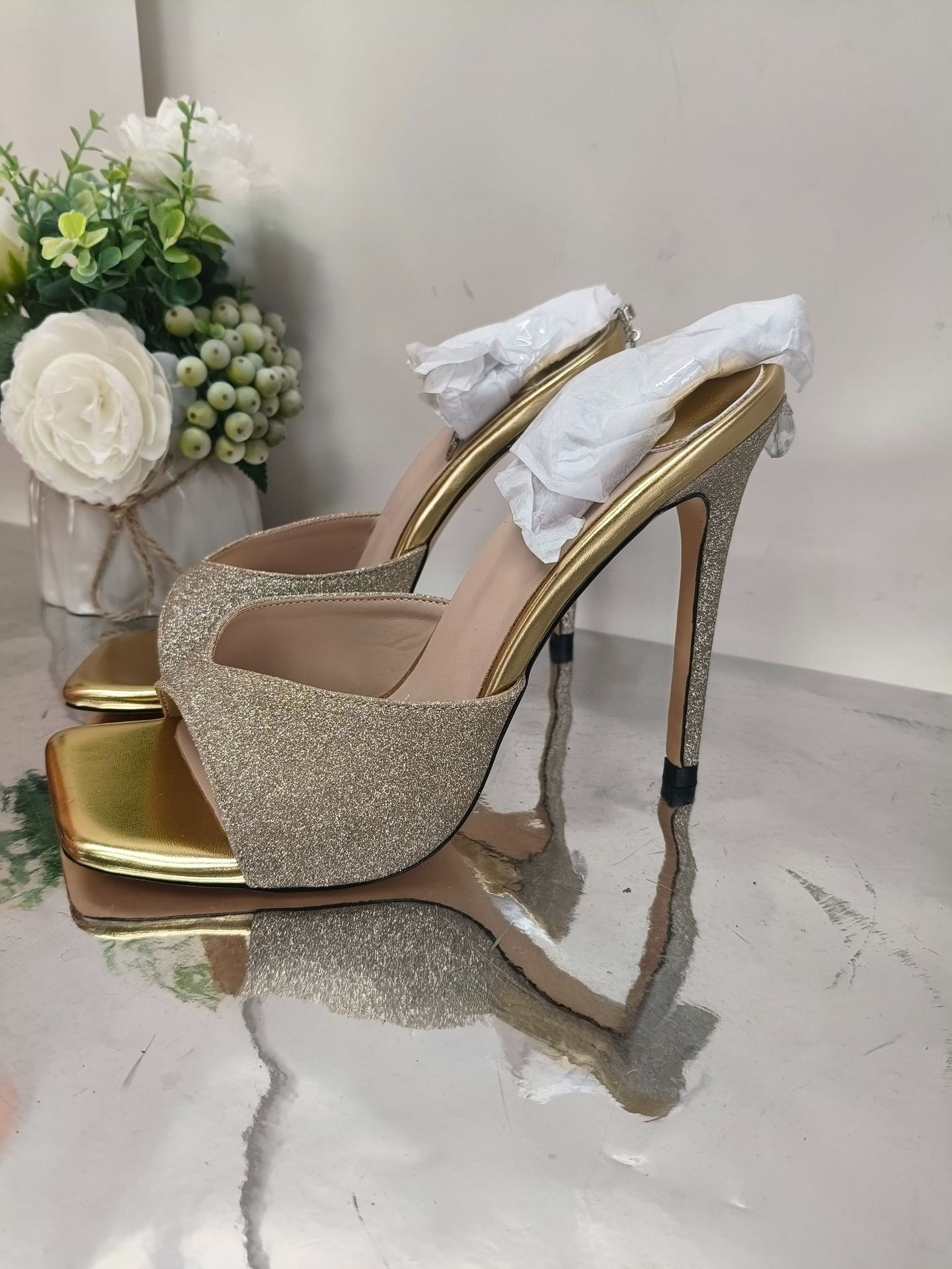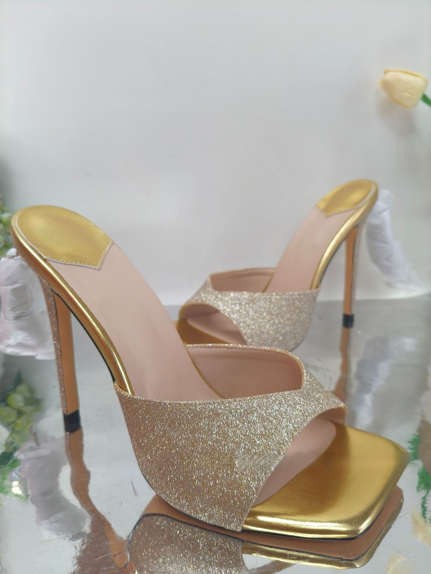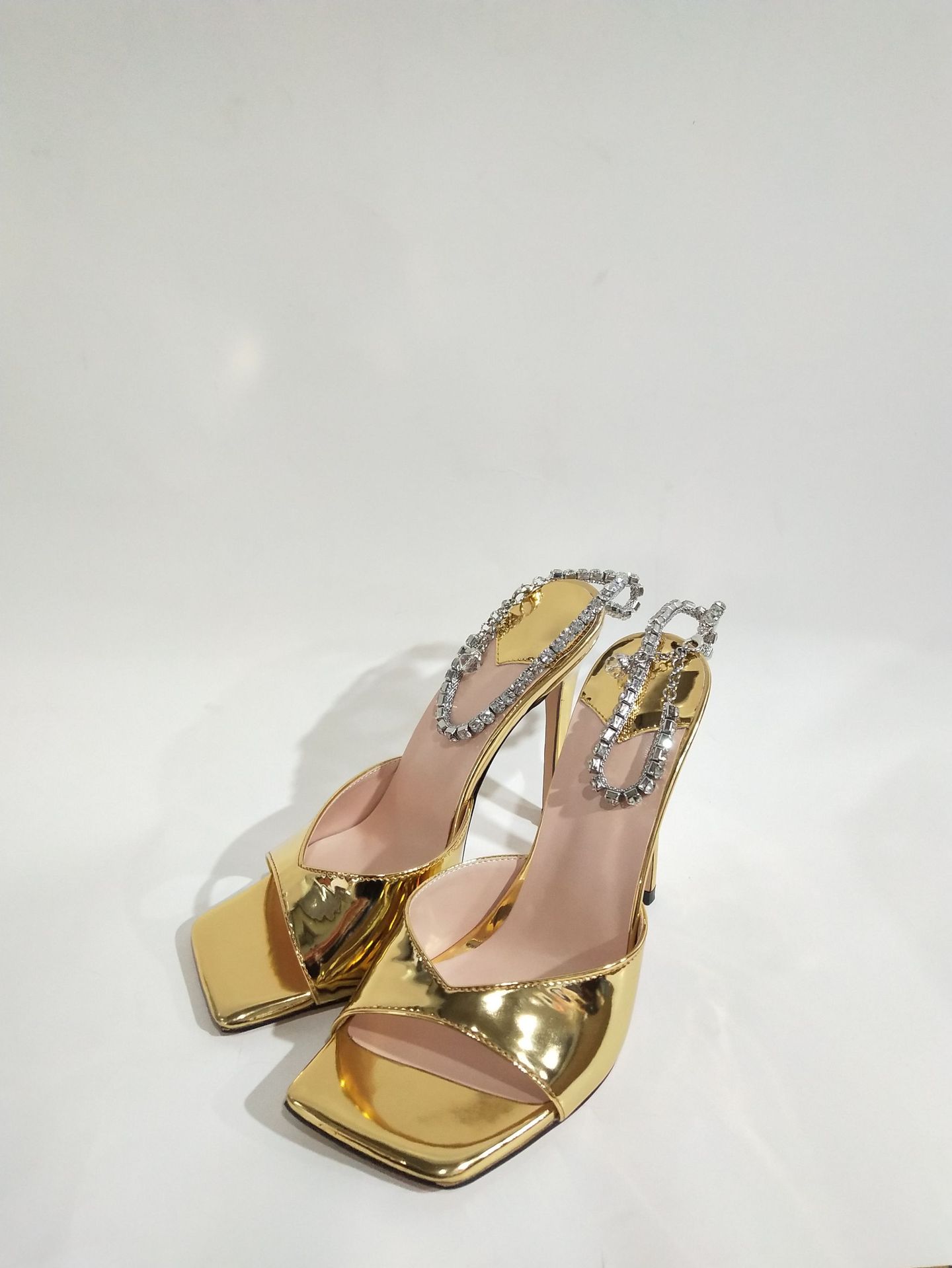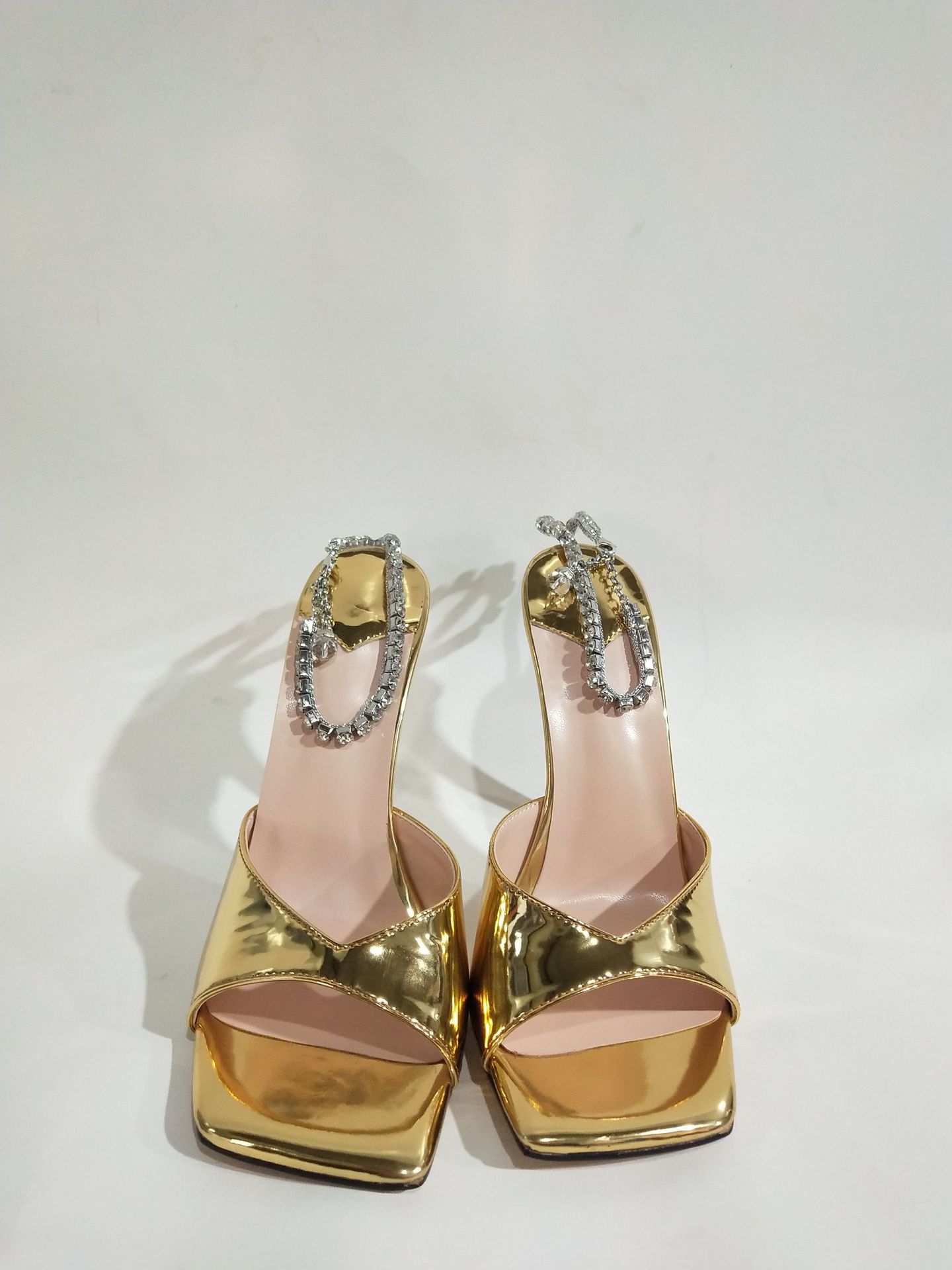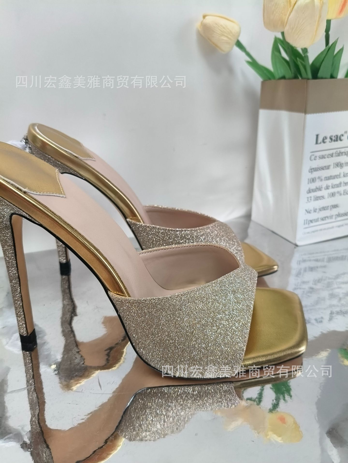Yilu_High-quality new square-toe, thin heel, ultra-high heel fashion show-stopping oversized slip-on chain sandals for women
