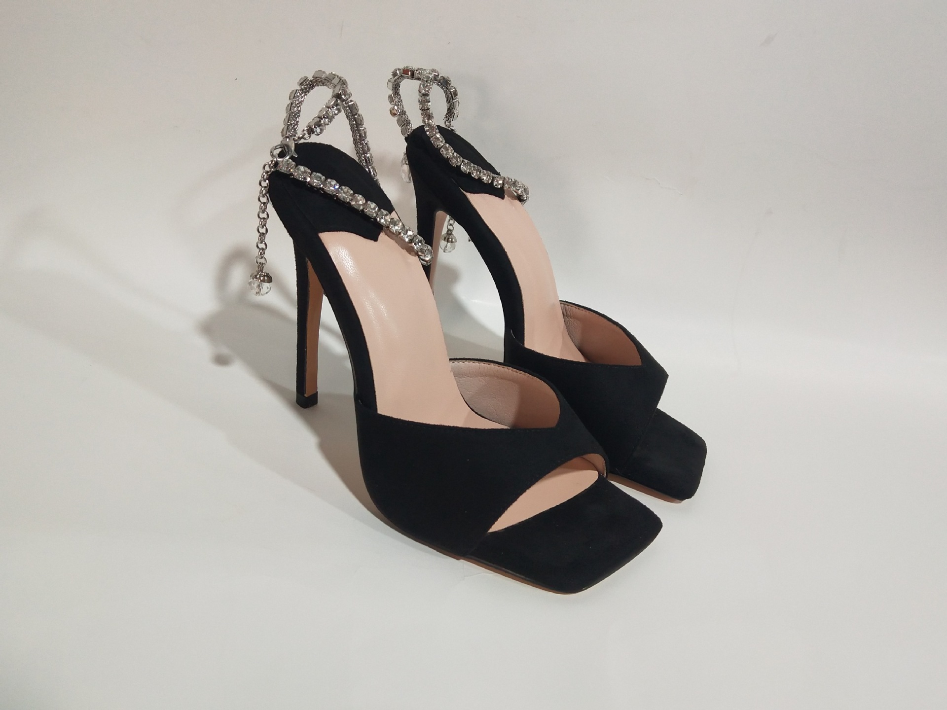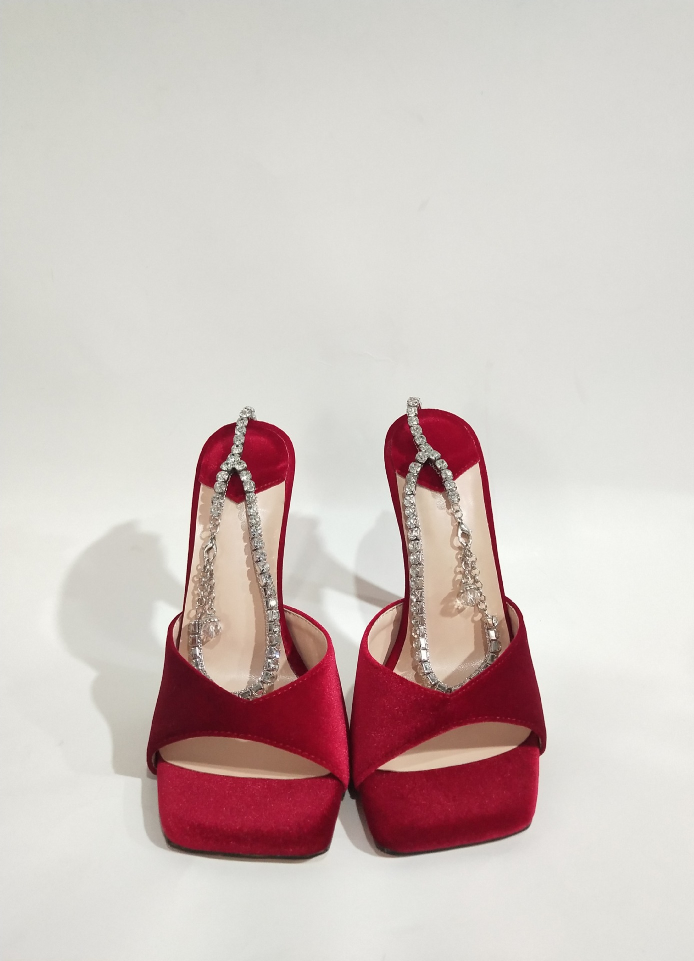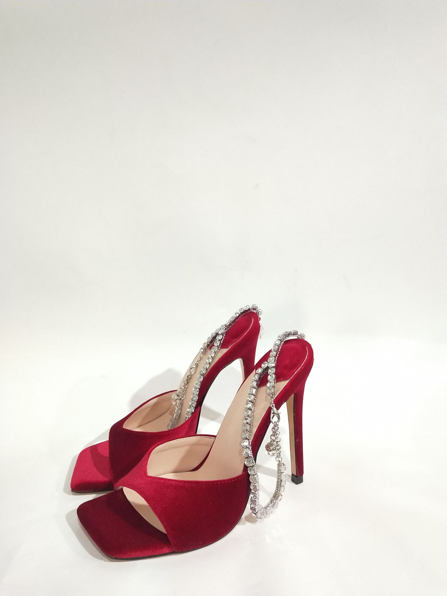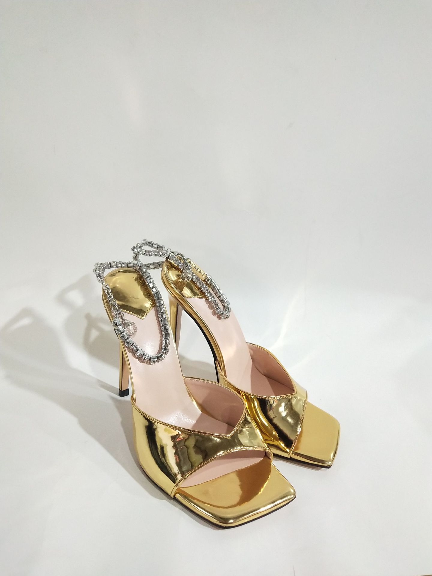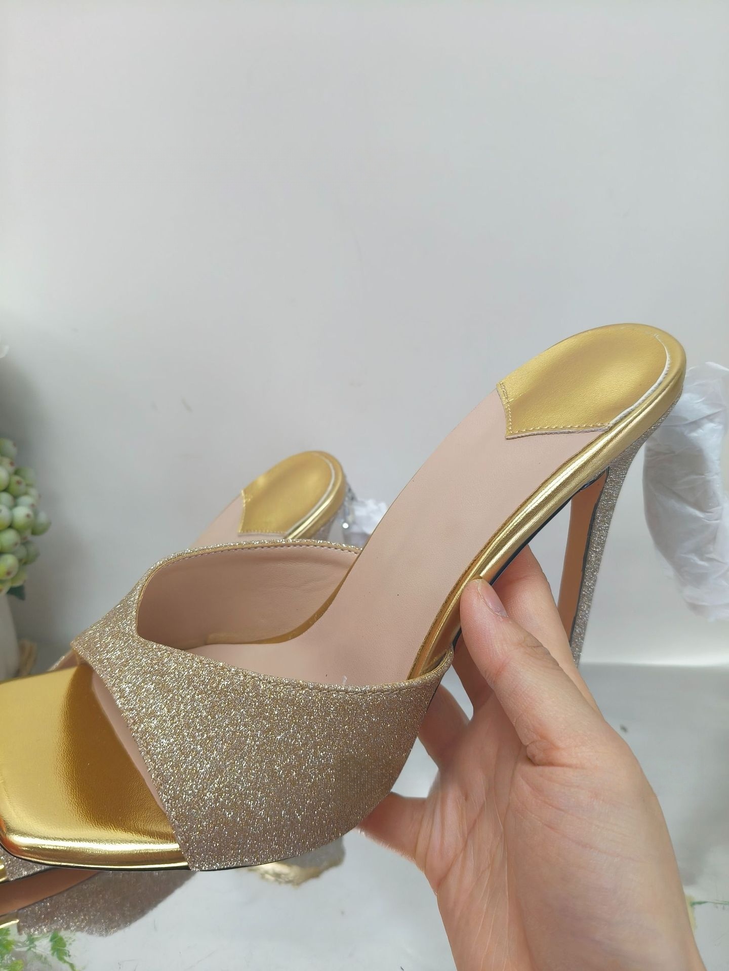 Yilu_High-quality new square-toe, thin heel, ultra-high heel fashion show-stopping oversized slip-on chain sandals for women