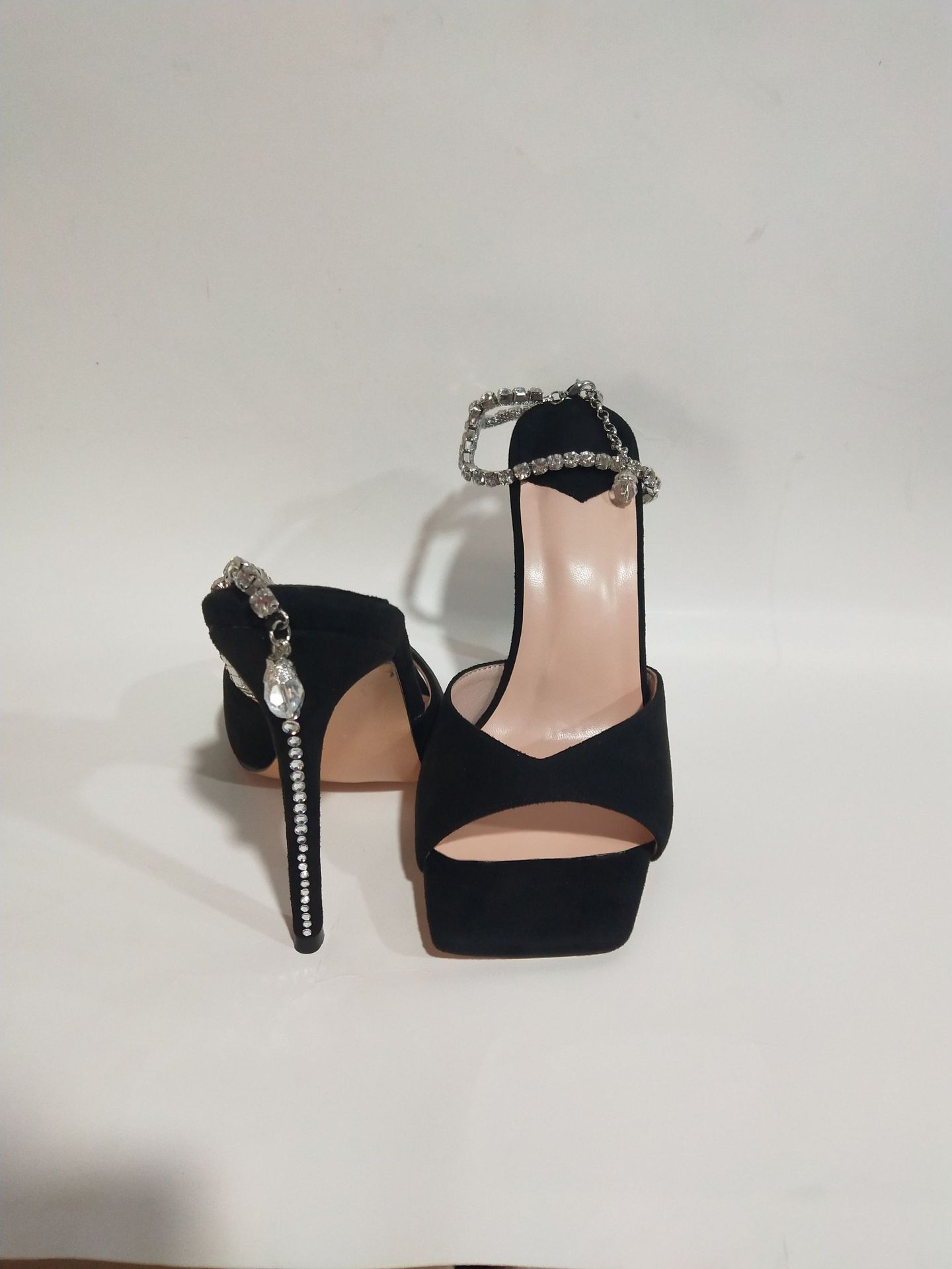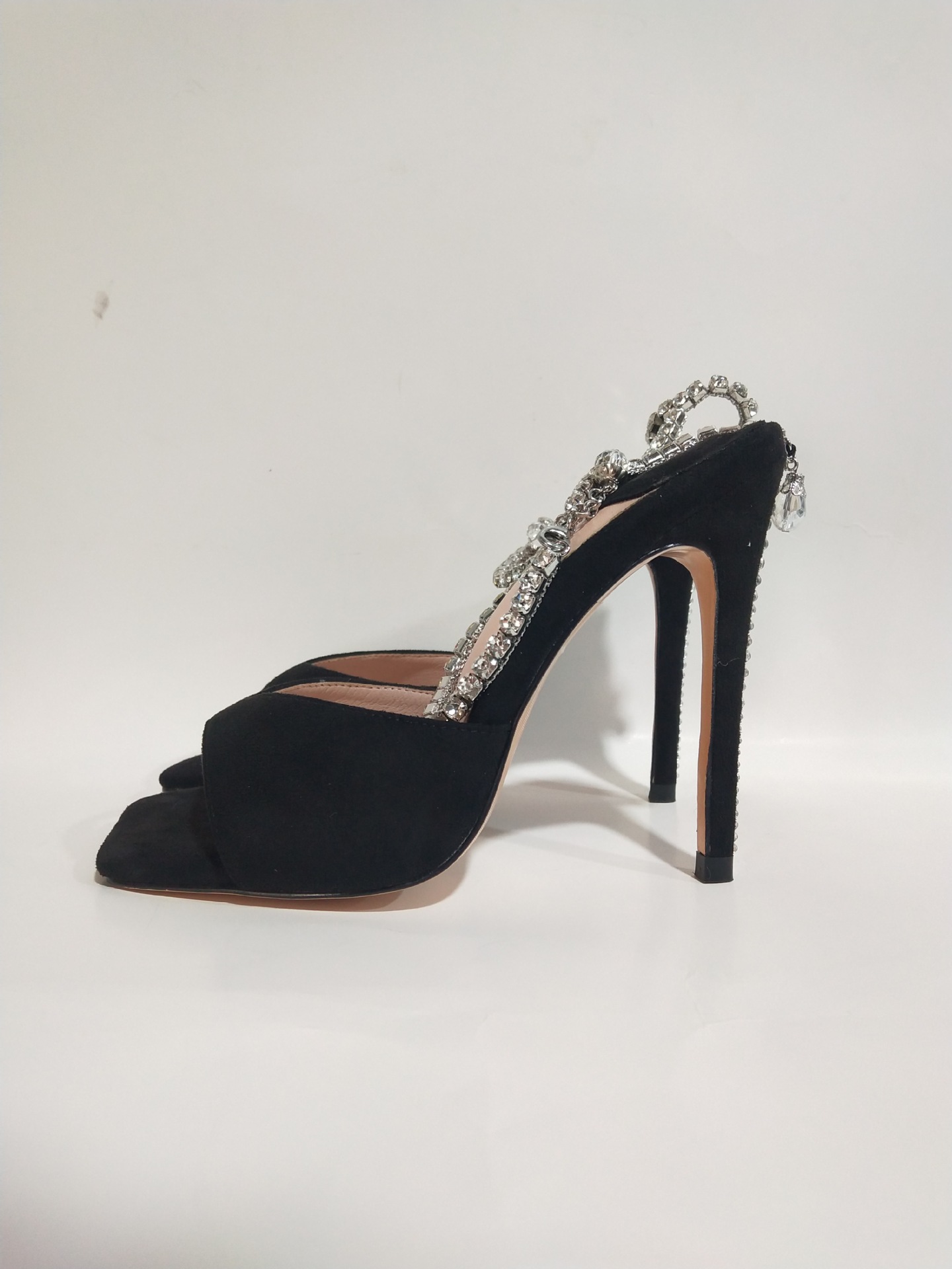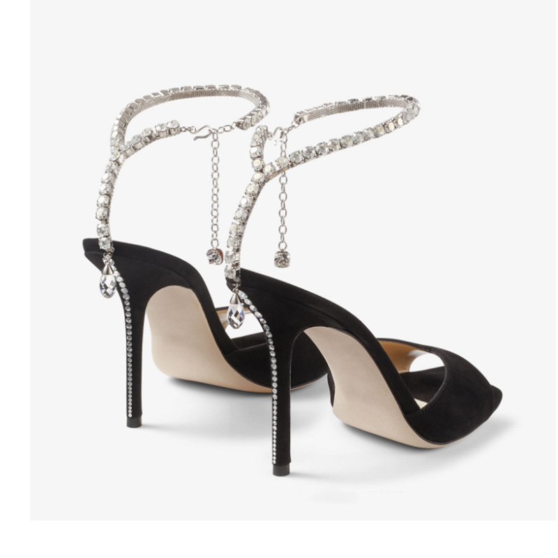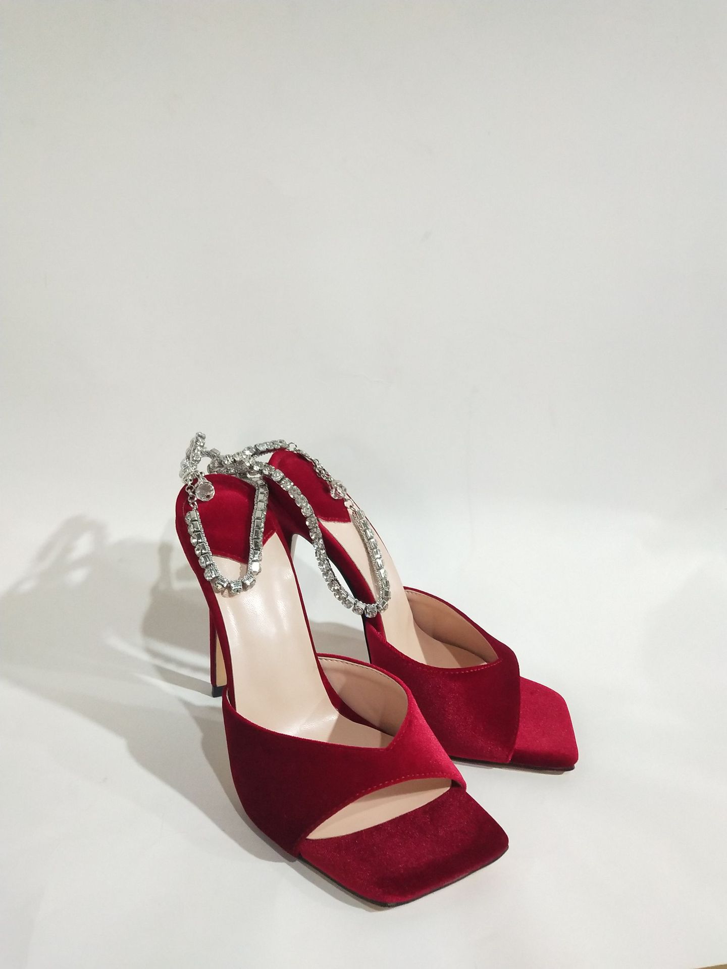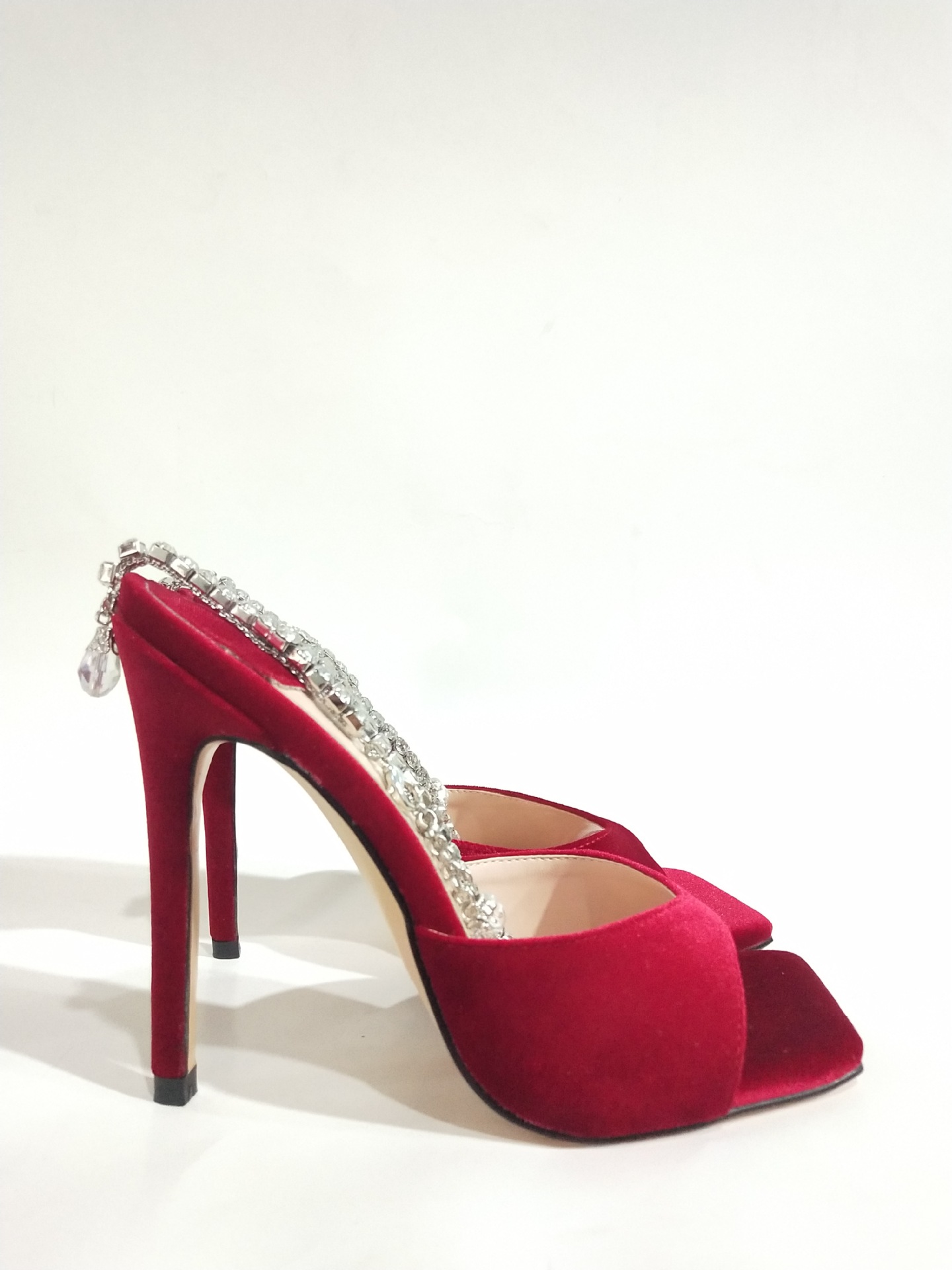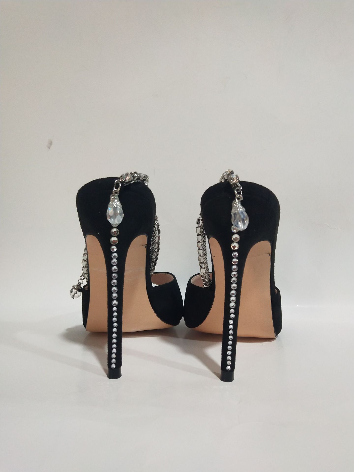 Yilu_High-quality new square-toe, thin heel, ultra-high heel fashion show-stopping oversized slip-on chain sandals for women