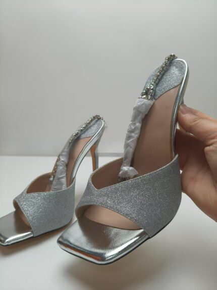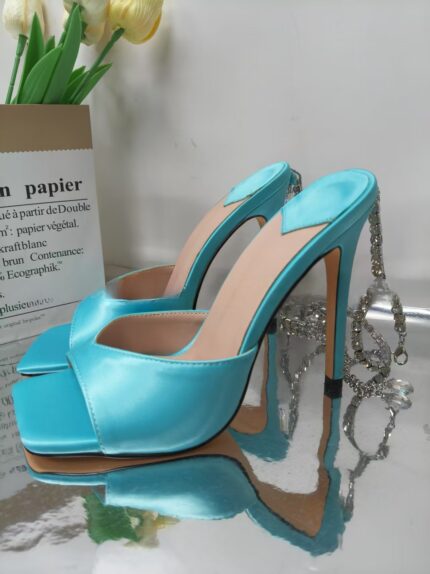 Yilu_High-quality new square-toe, thin heel, ultra-high heel fashion show-stopping oversized slip-on chain sandals for women