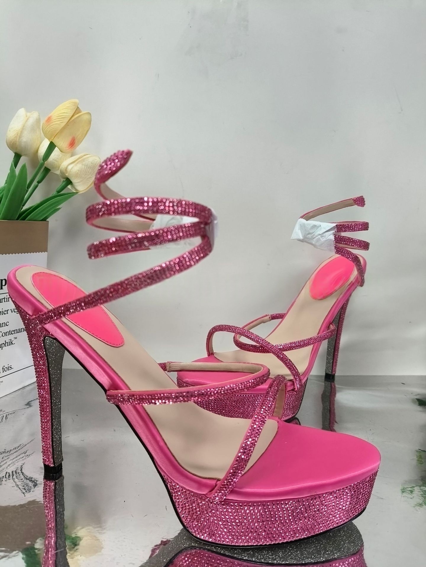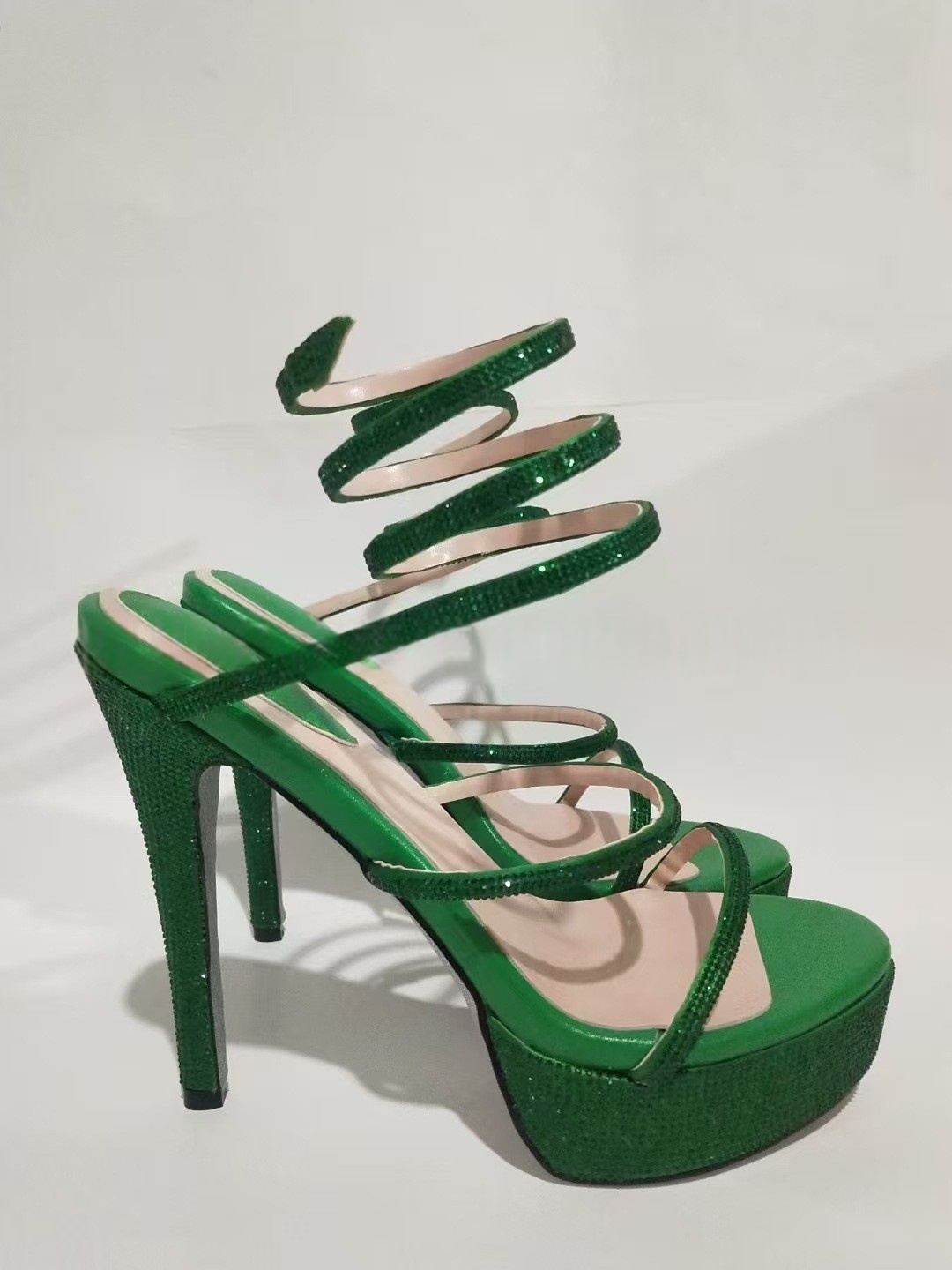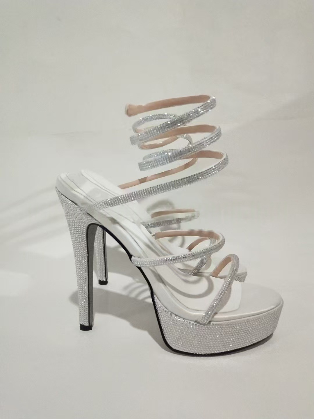 Yilu_High-quality new super-high heel round-toe water droplet-shaped spiral-wrapped waterproof platform slip-on water droplet-shaped thin heel women’s sandals