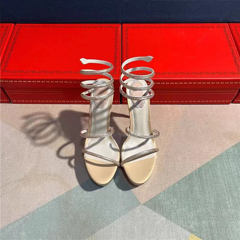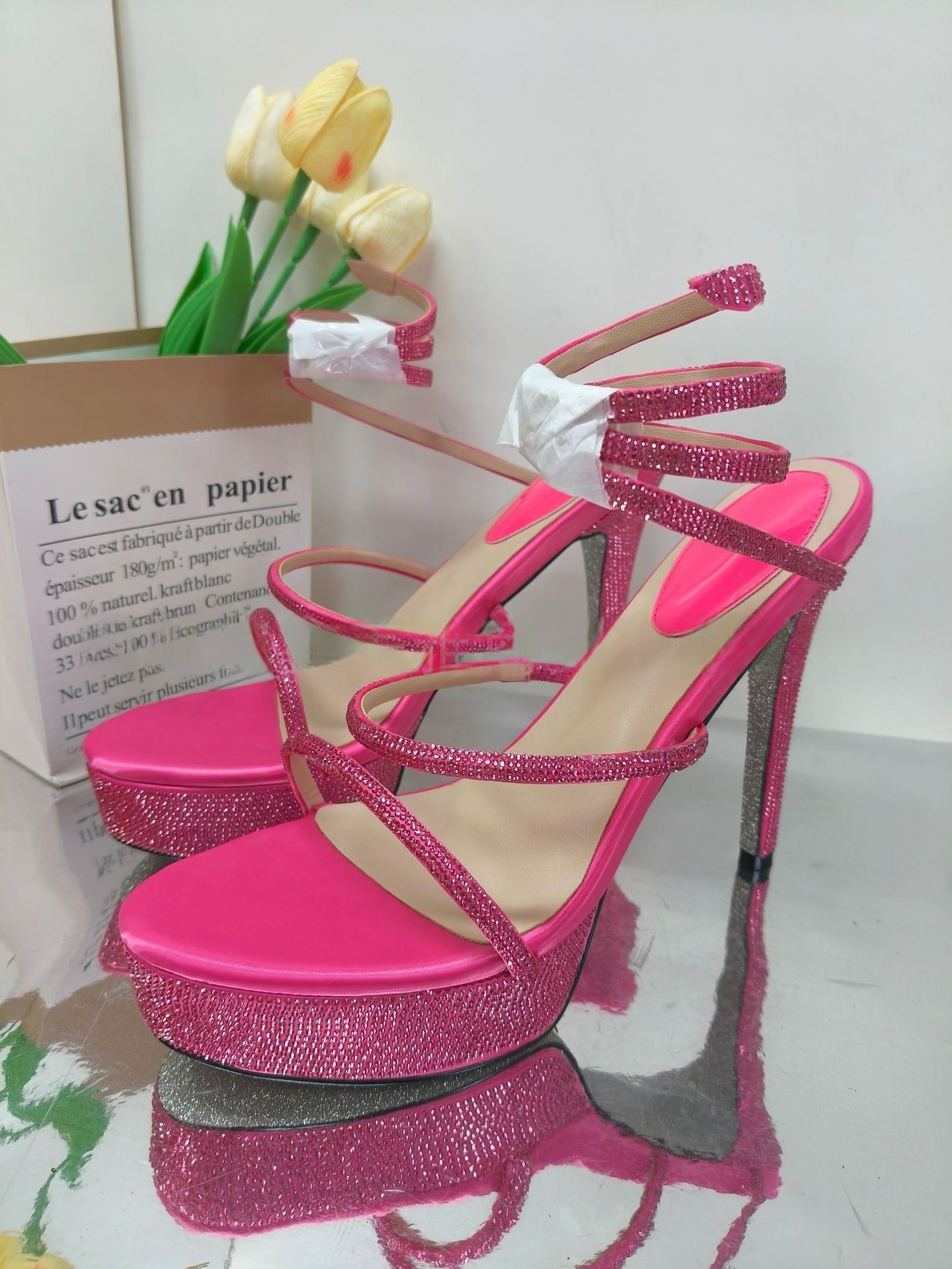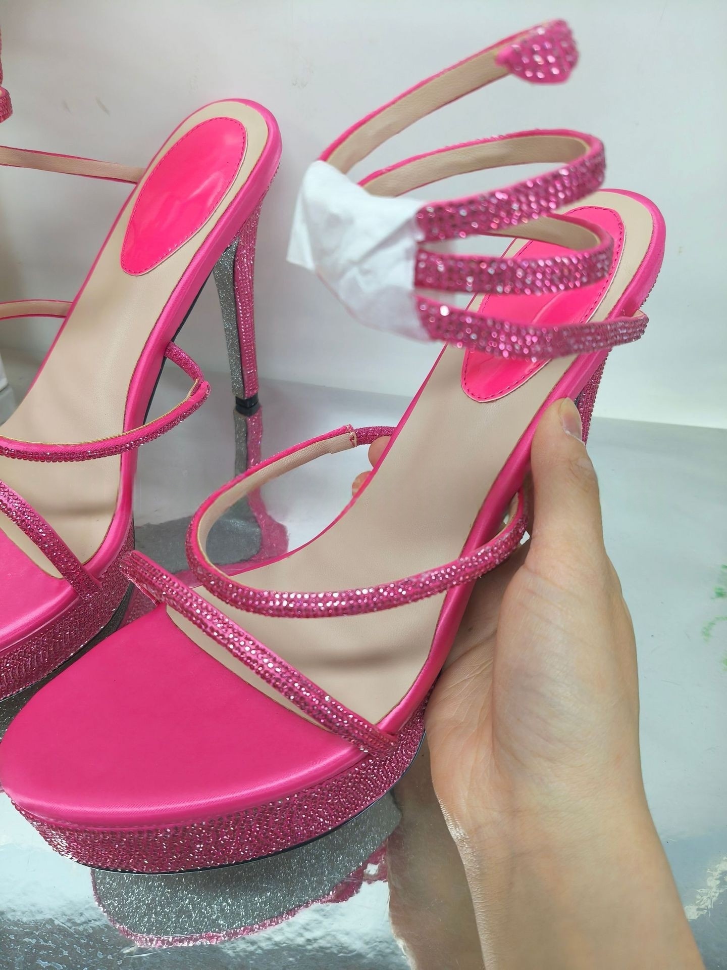 Yilu_High-quality exquisite water droplet-shaped rhinestone low-cut thin-soled pointed-toe shoes for women, Roman-style hollowed-out high-heeled women’s sandals