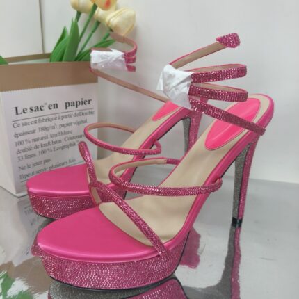 Yilu_High-quality exquisite water droplet-shaped rhinestone low-cut thin-soled pointed-toe shoes for women, Roman-style hollowed-out high-heeled women’s sandals