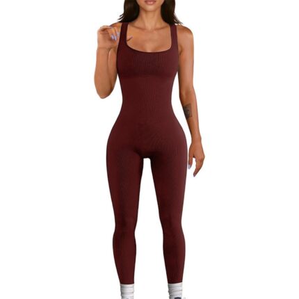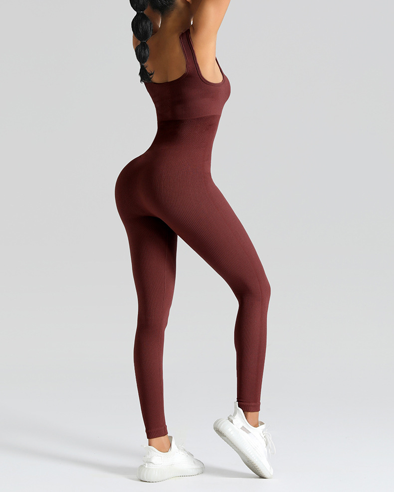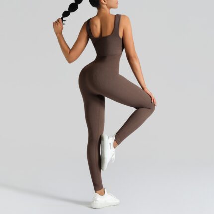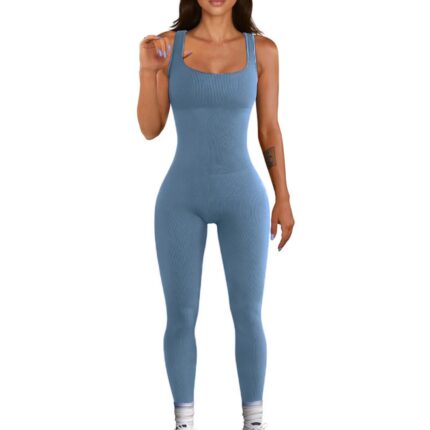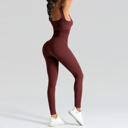 High-quality yoga one-piece women’s halter top with back support integrated fitness suit with adjustable design for exercise