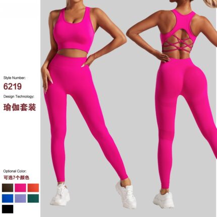 High-quality seamless back yoga wear set for wholesale. Women’s sport underwear. European style high-waisted peach-bottom fitness yoga pants.