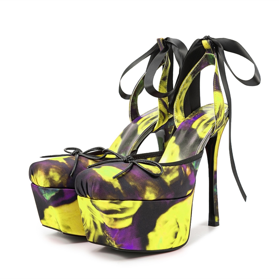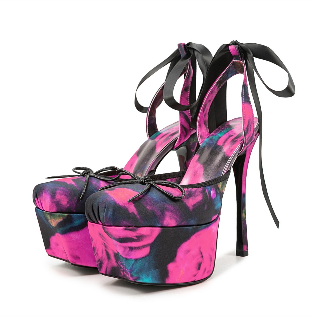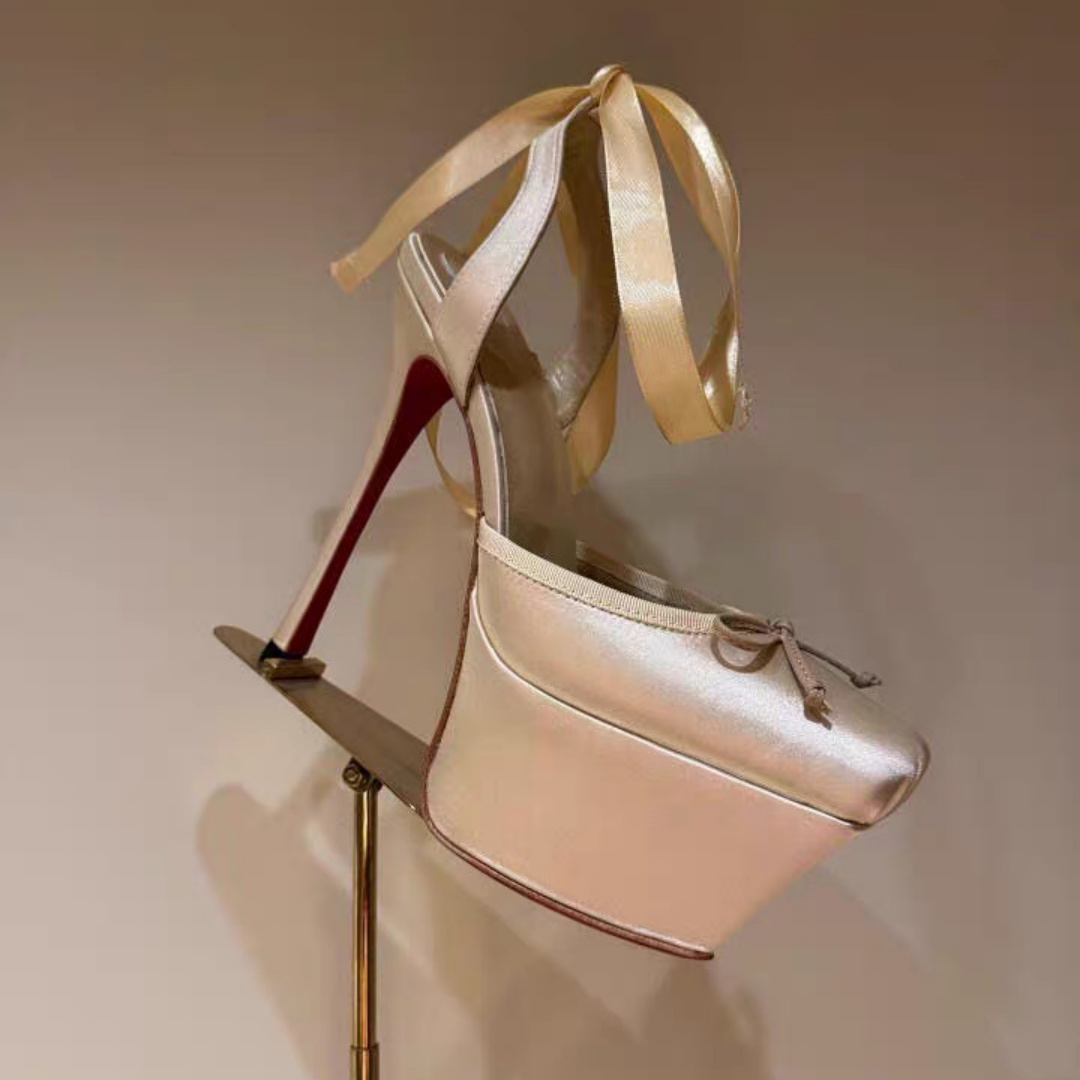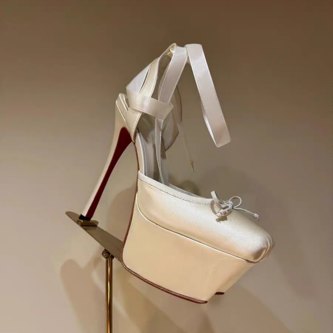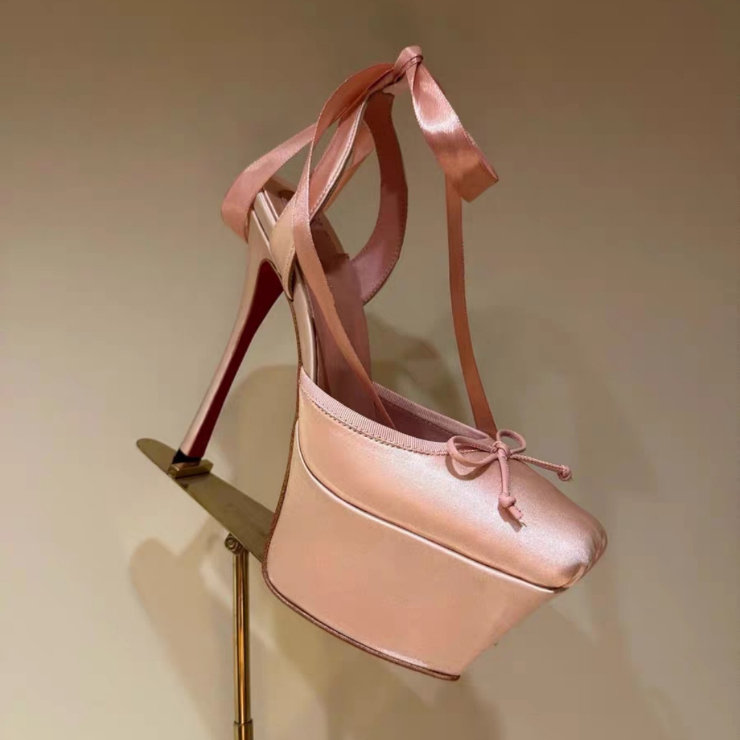 Yilu_High-quality platform ballet flats with square toe, waterproof platform, satin ribbon cross-straps and bow decoration