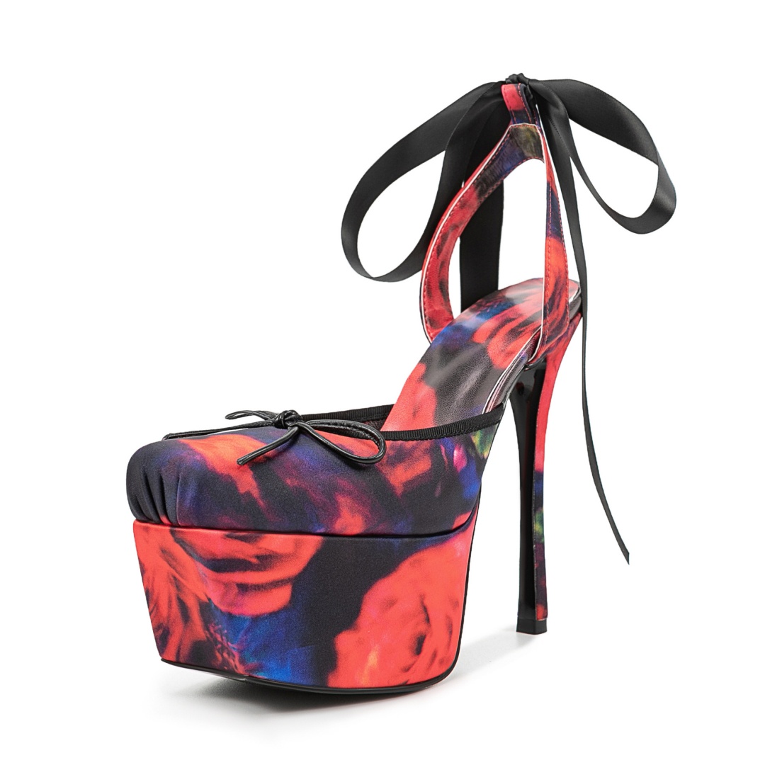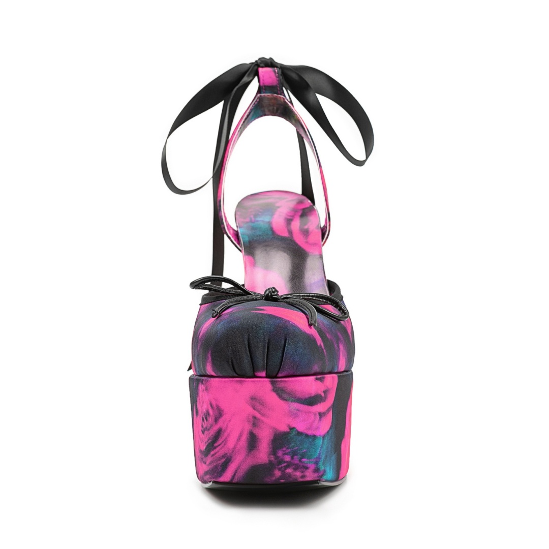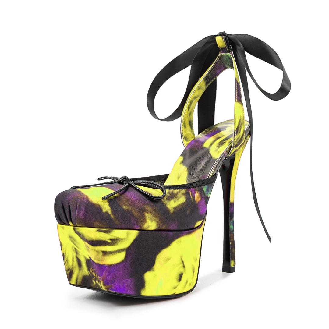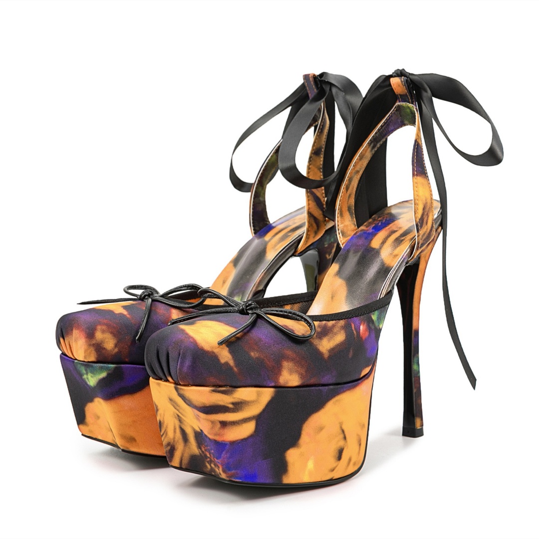 Yilu_High-quality platform ballet flats with square toe, waterproof platform, satin ribbon cross-straps and bow decoration