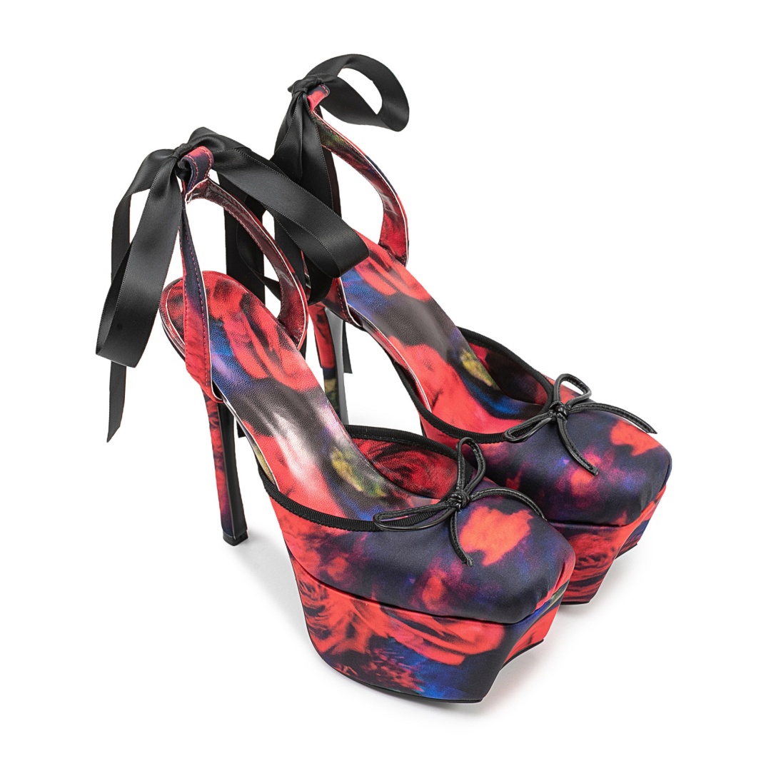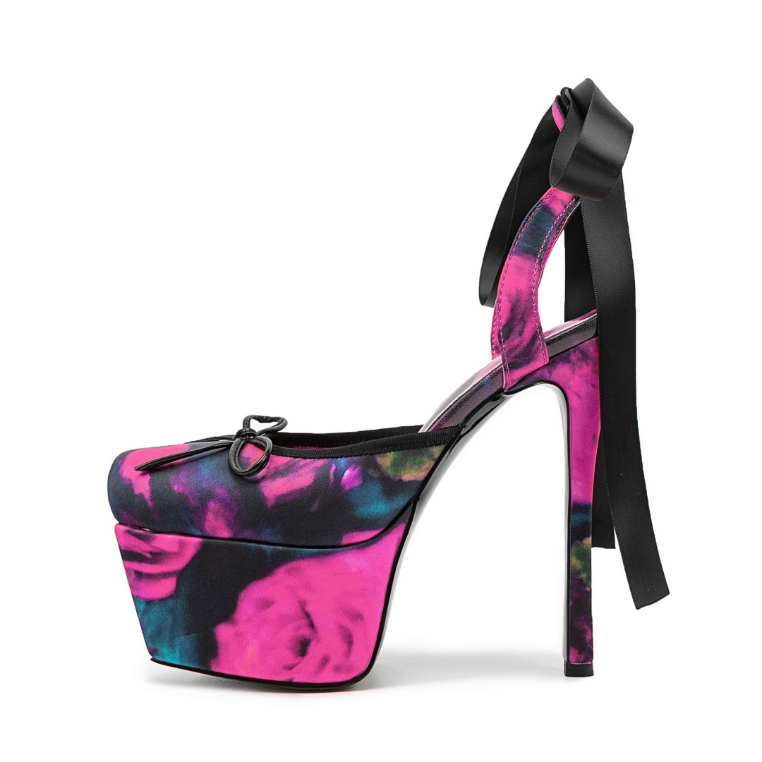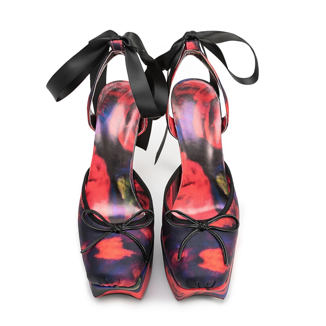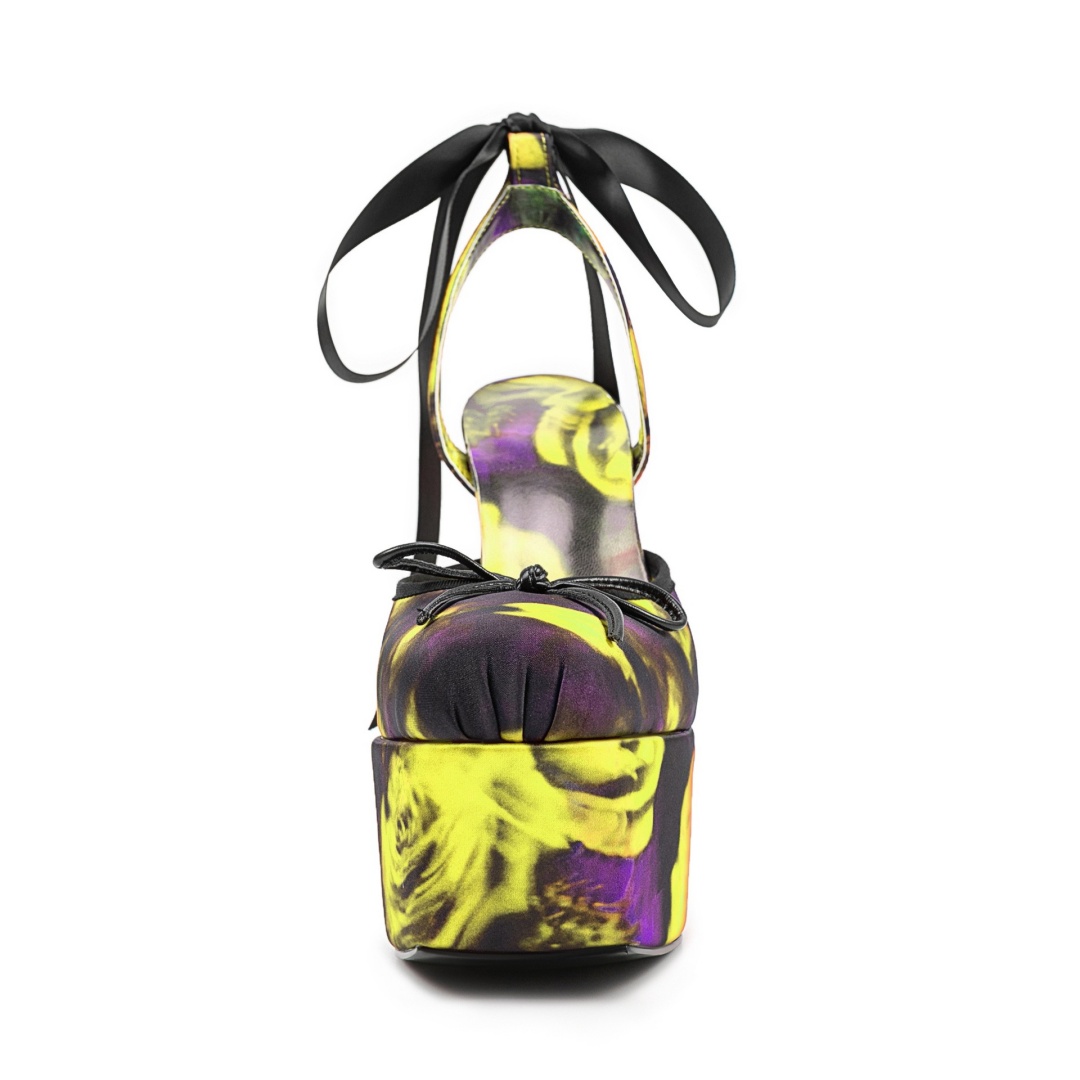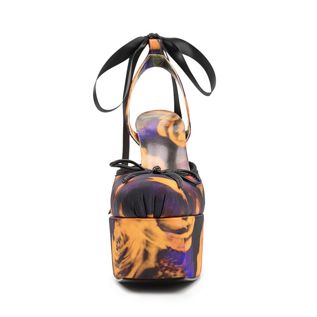 Yilu_High-quality platform ballet flats with square toe, waterproof platform, satin ribbon cross-straps and bow decoration