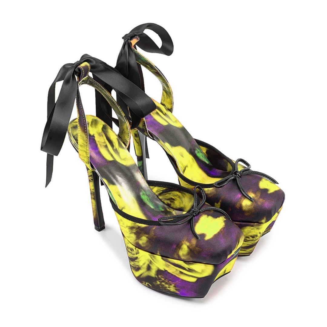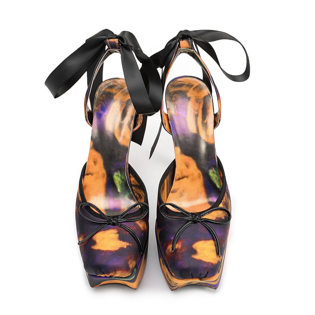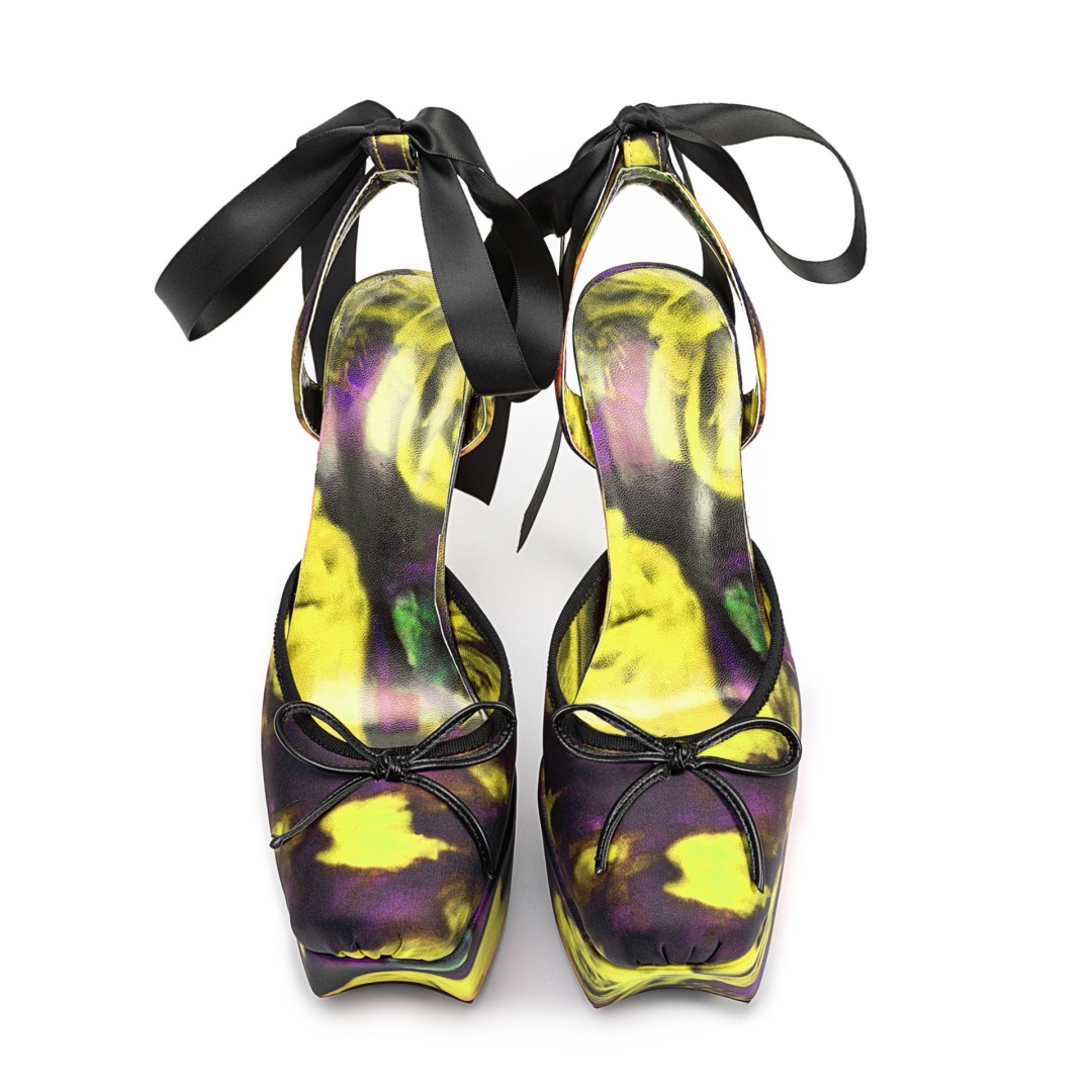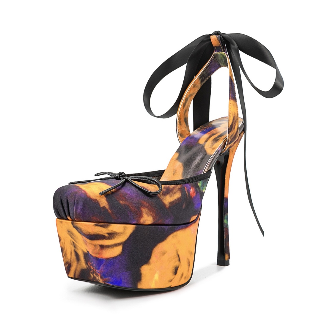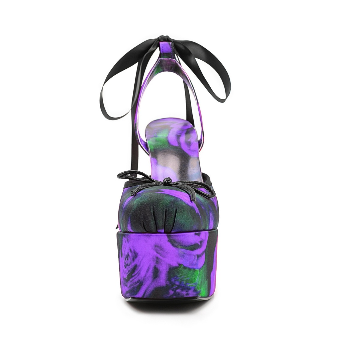 Yilu_High-quality platform ballet flats with square toe, waterproof platform, satin ribbon cross-straps and bow decoration