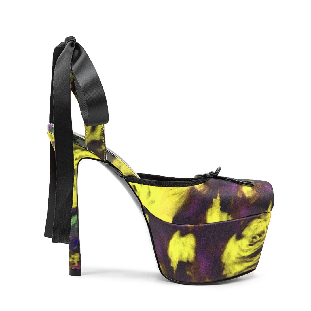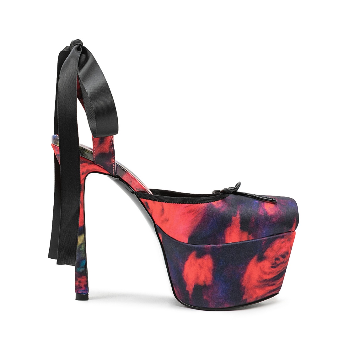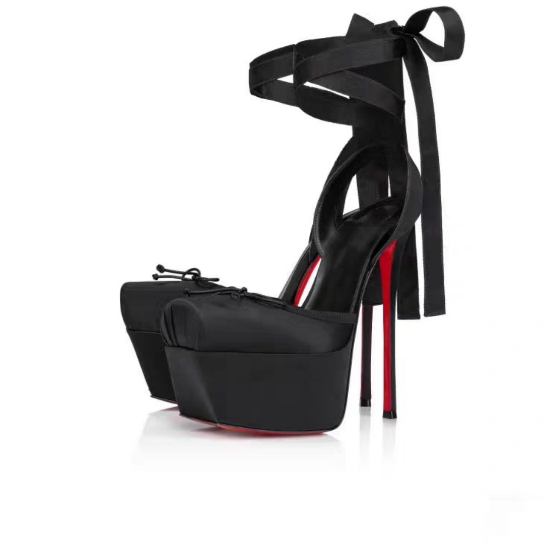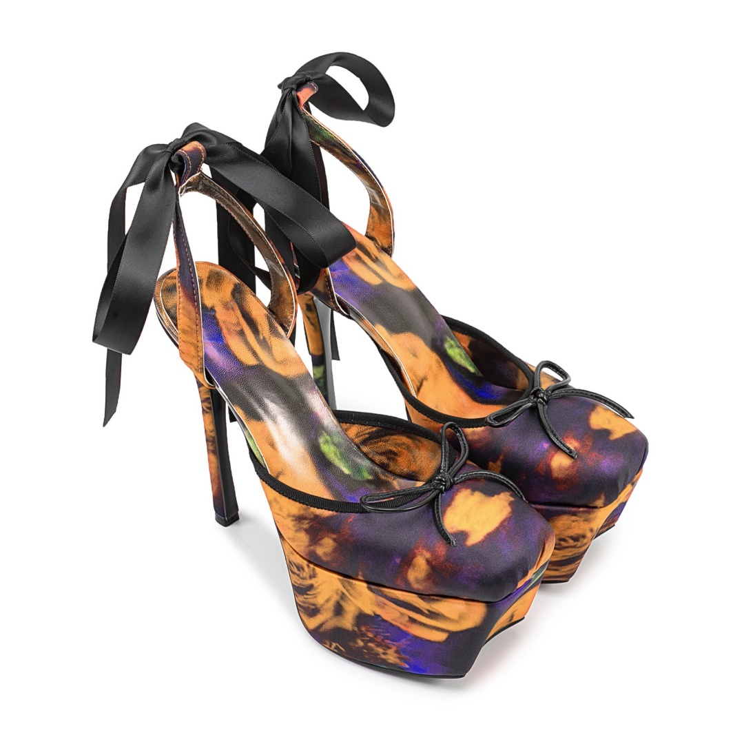 Yilu_High-quality platform ballet flats with square toe, waterproof platform, satin ribbon cross-straps and bow decoration